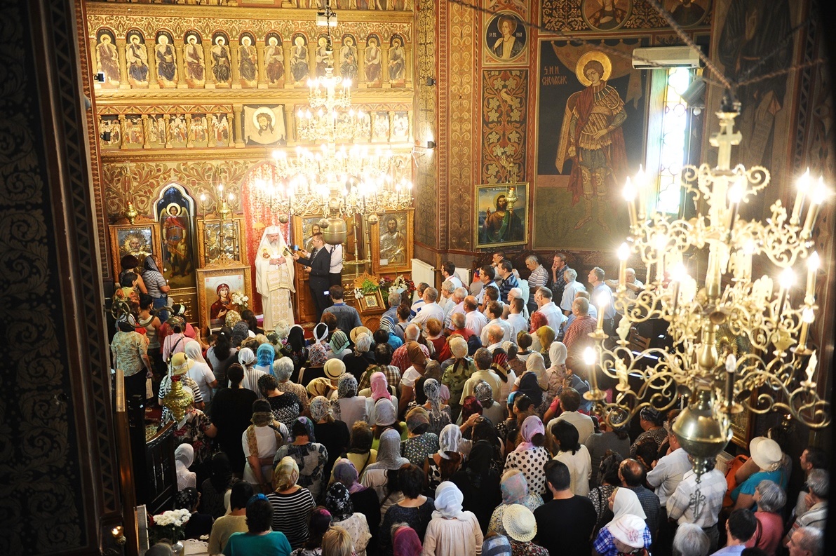 August > Patriarhul României în mijlocul credincioşilor Parohiei „Sfântul Ioan Botezătorul” din cartierul bucureştean Pantelimon (29 august 2013)