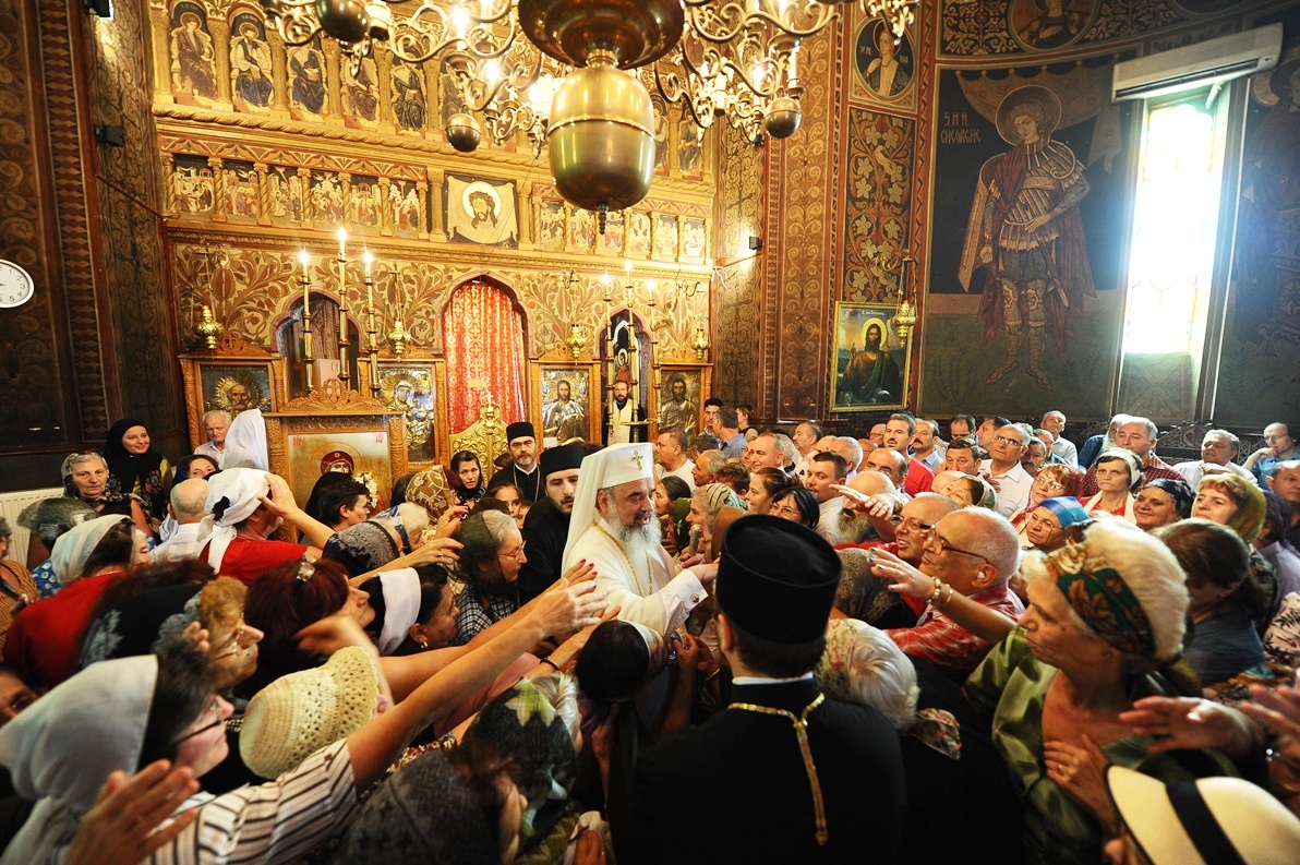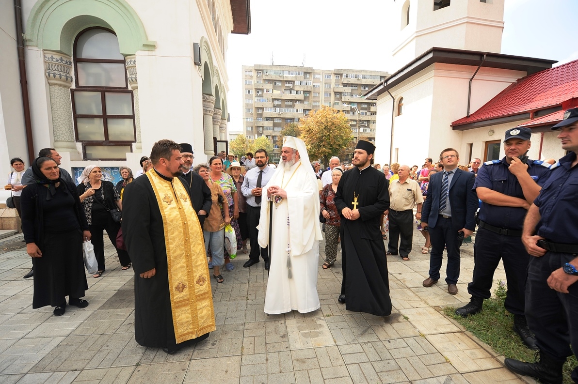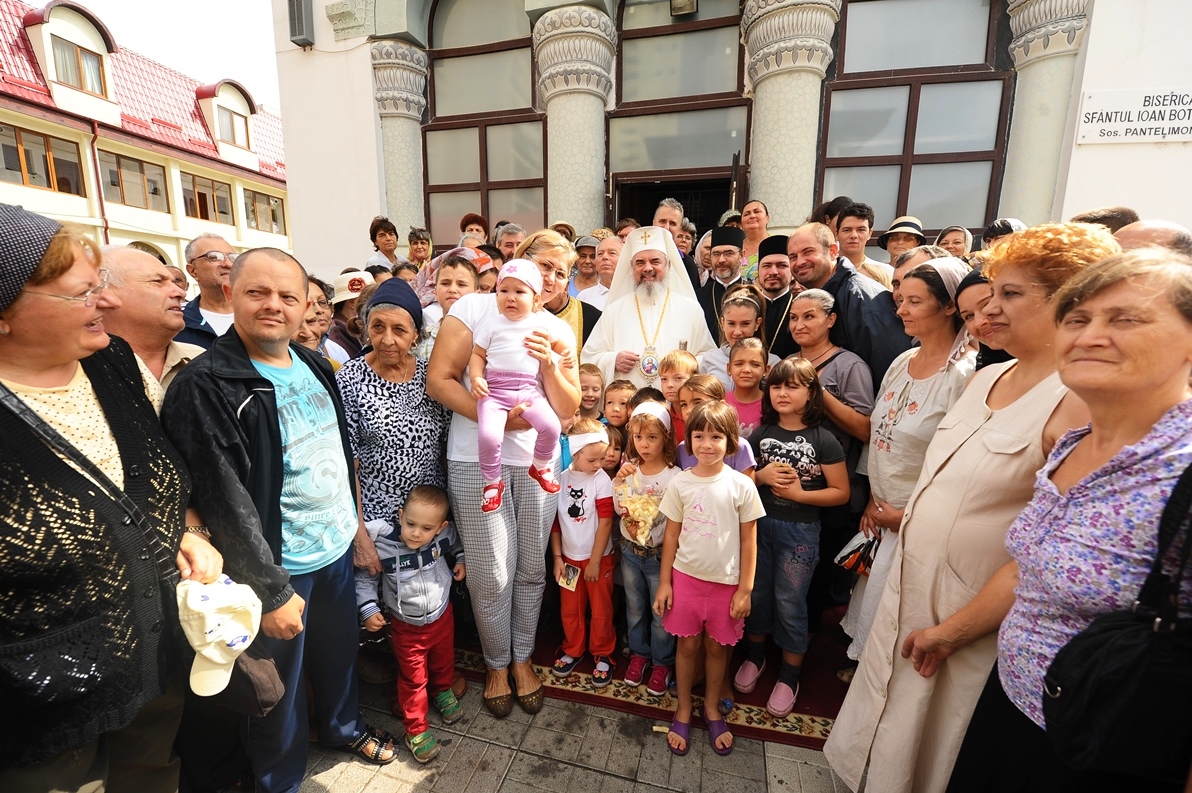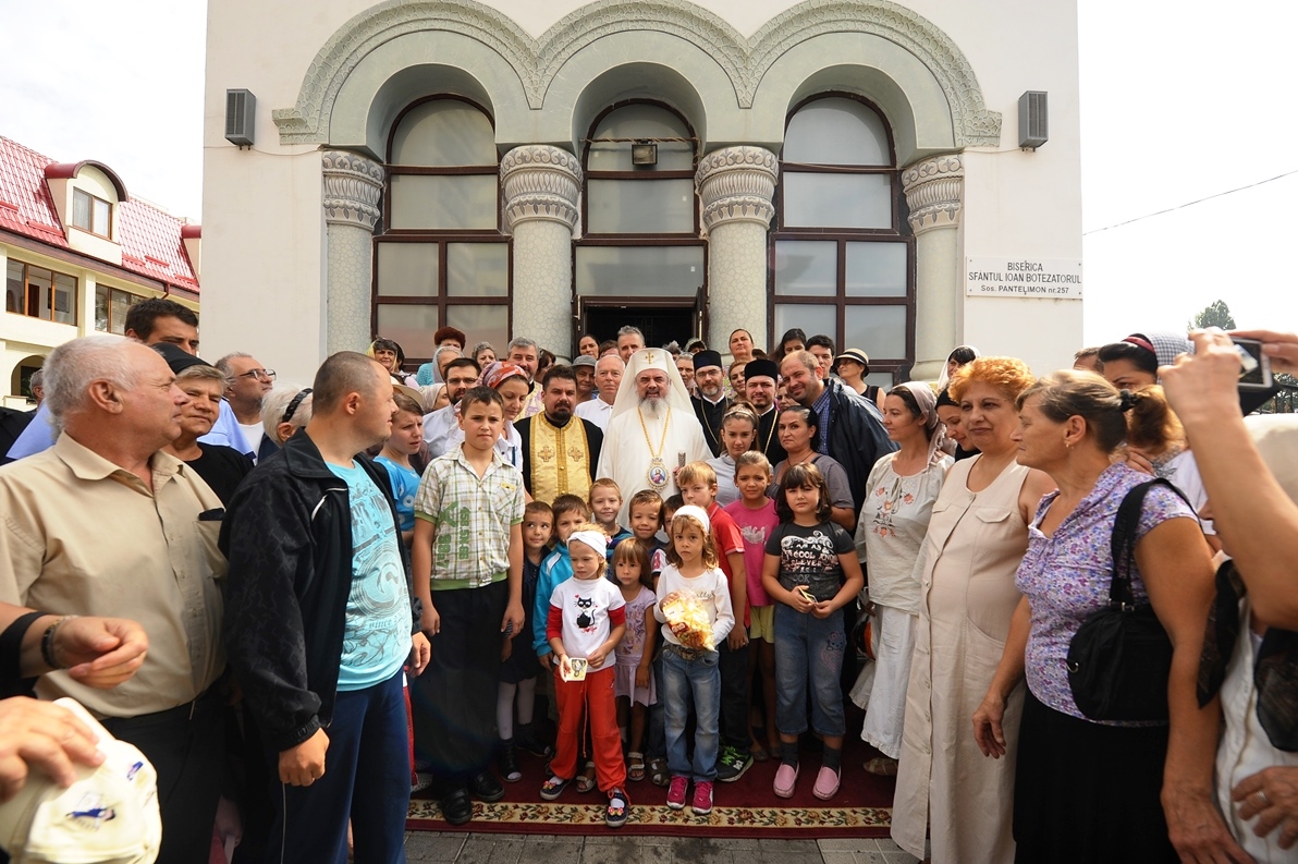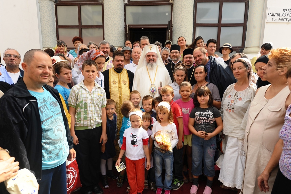 Patriarhul României în mijlocul credincioşilor Parohiei „Sfântul Ioan Botezătorul” din cartierul bucureştean Pantelimon (29 august 2013)