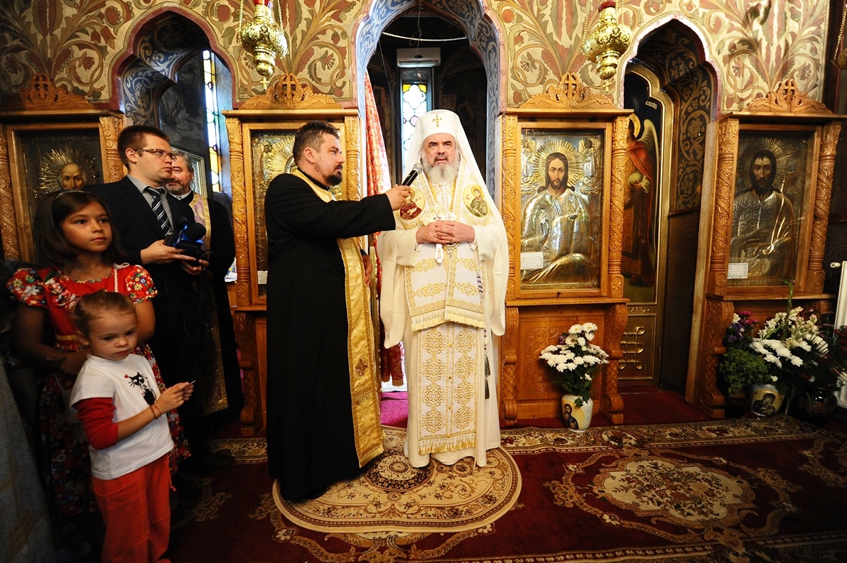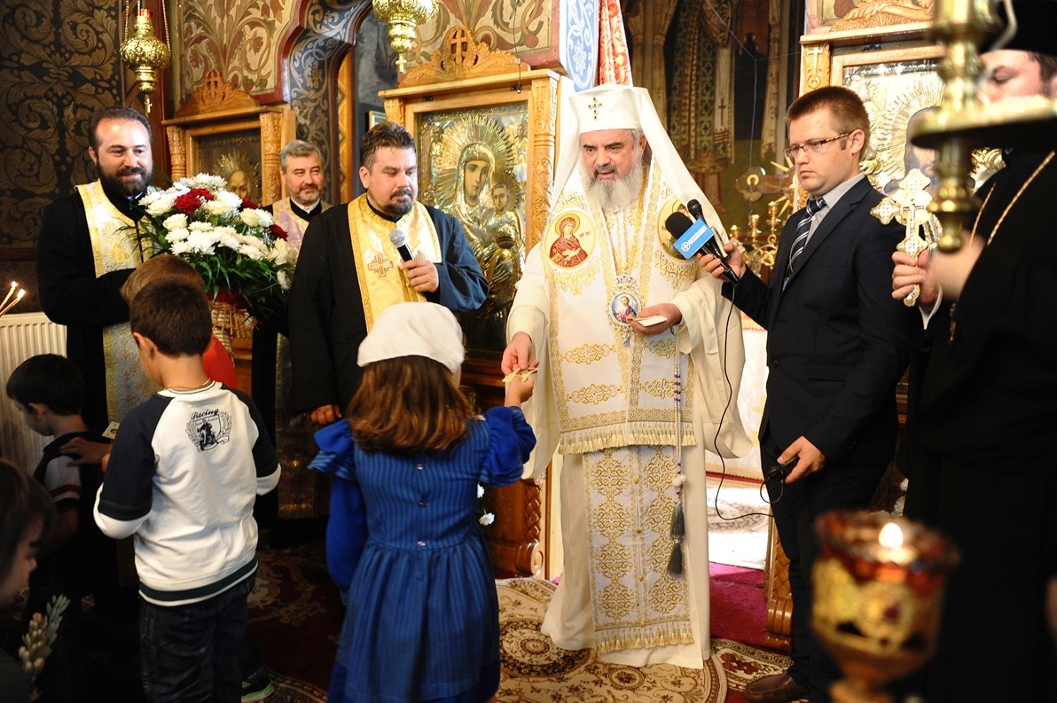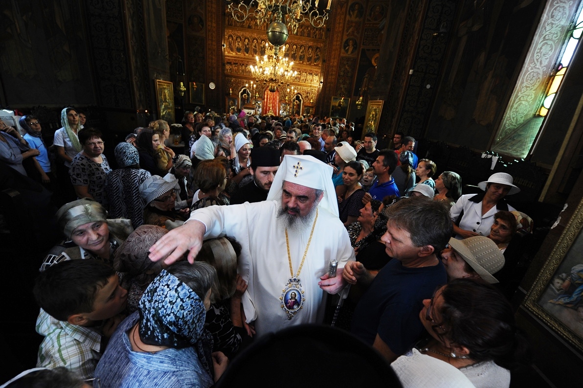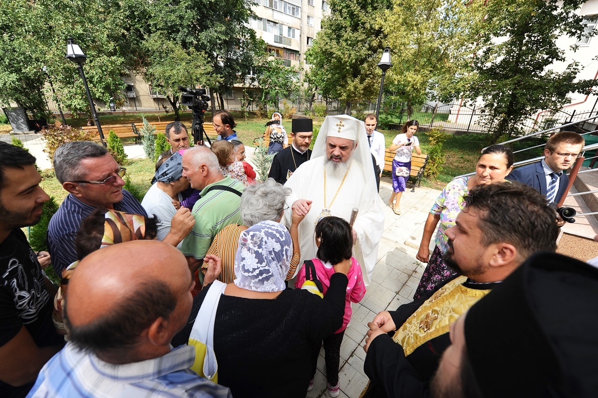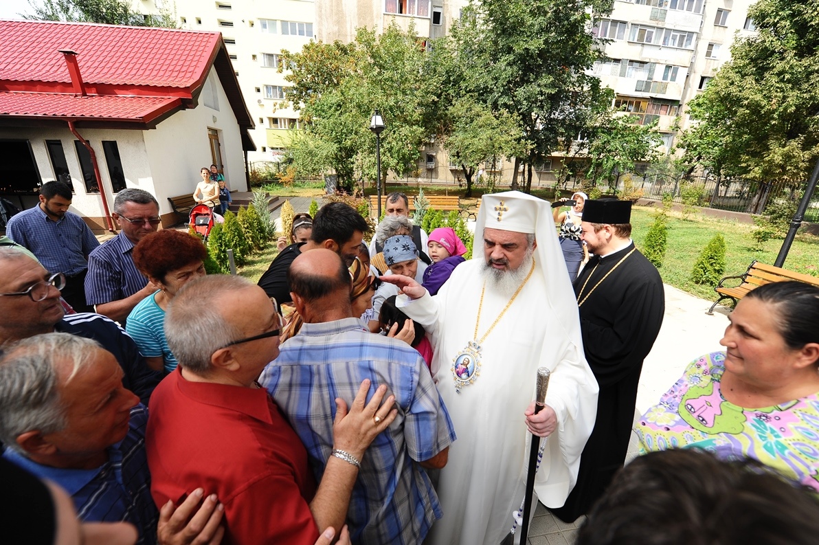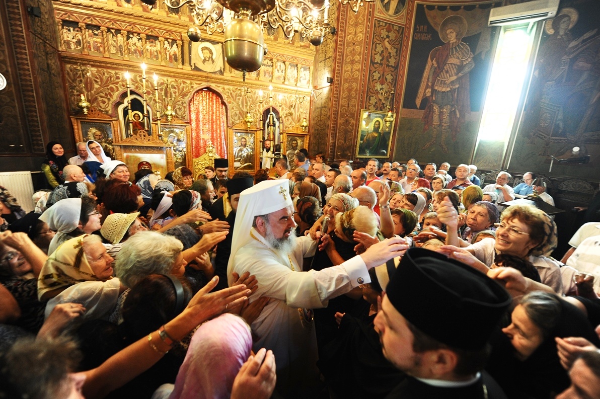 Patriarhul României în mijlocul credincioşilor Parohiei „Sfântul Ioan Botezătorul” din cartierul bucureştean Pantelimon (29 august 2013)