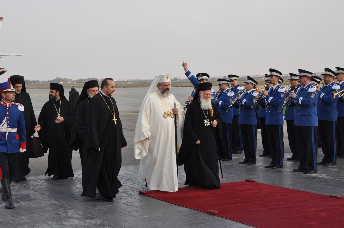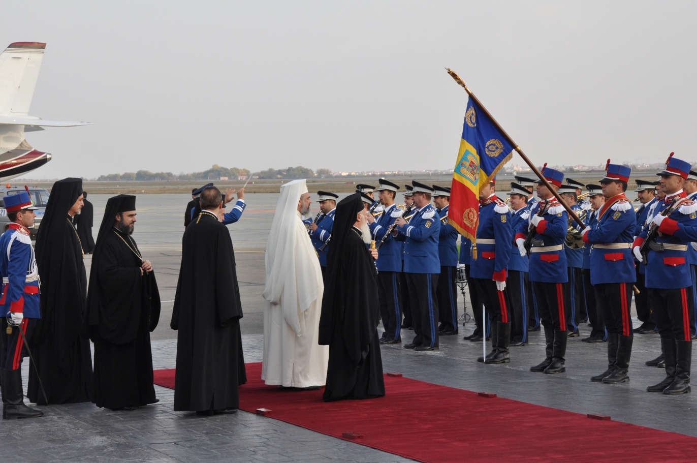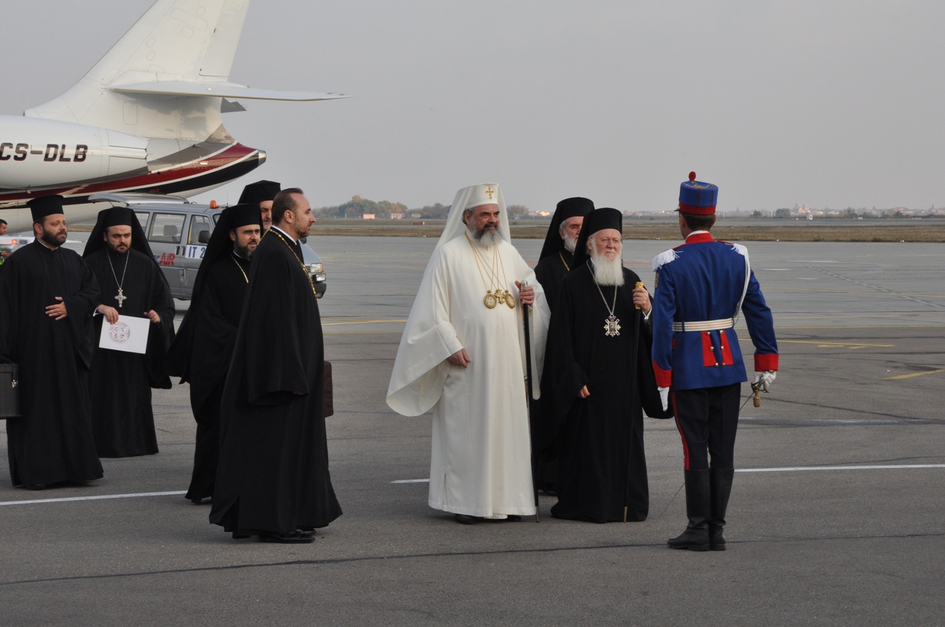 > Patriarhul României l-a întâmpinat pe Patriarhul Ecumenic la Aeroportul „Henri Coandă” (26 octombrie 2010)