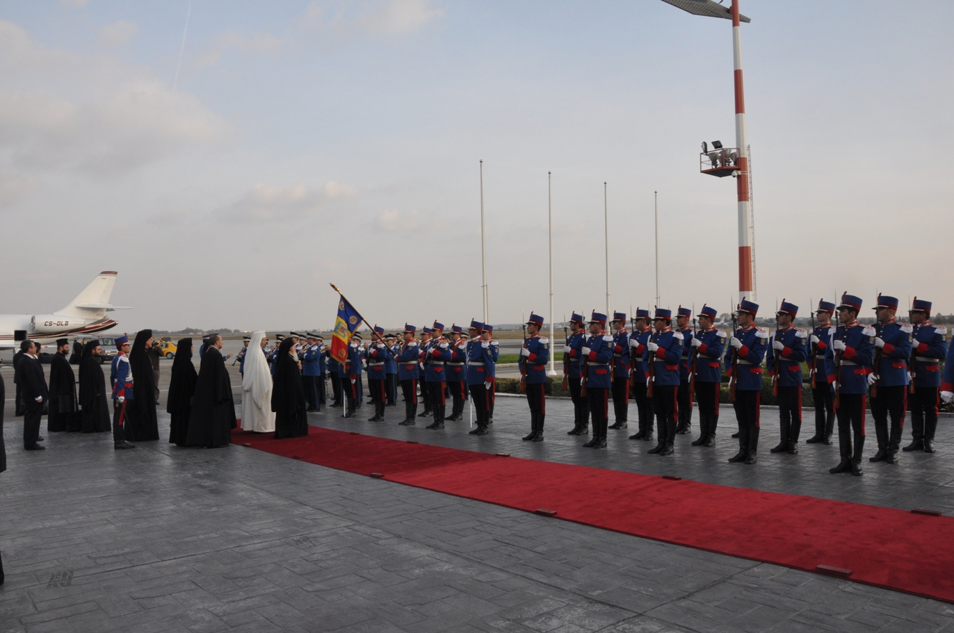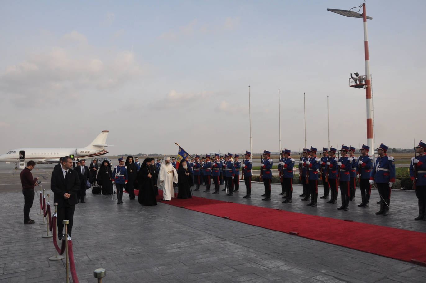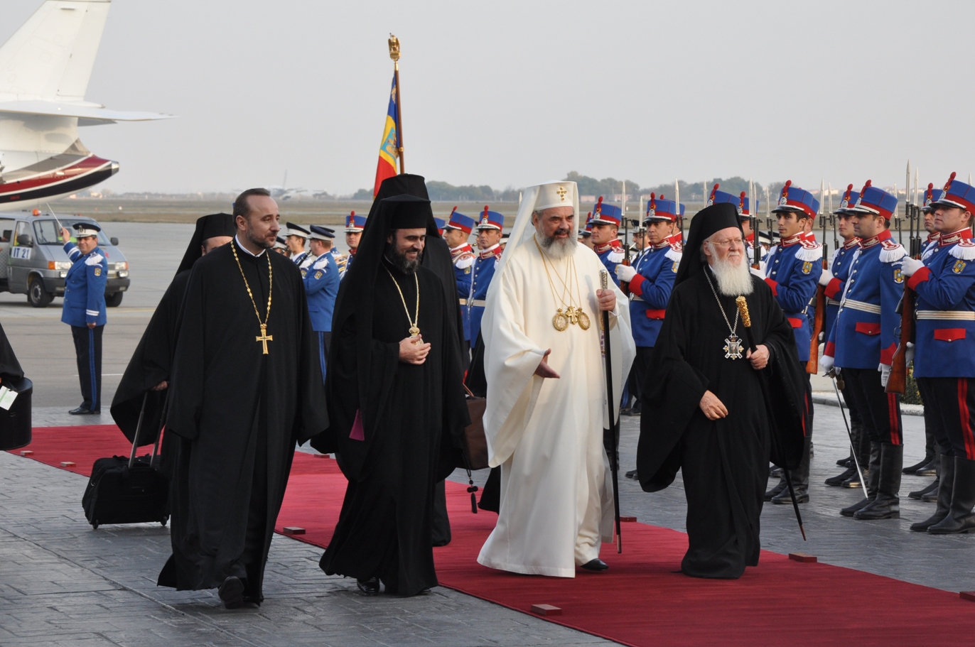 > Patriarhul României l-a întâmpinat pe Patriarhul Ecumenic la Aeroportul „Henri Coandă” (26 octombrie 2010)