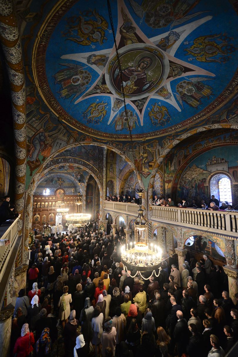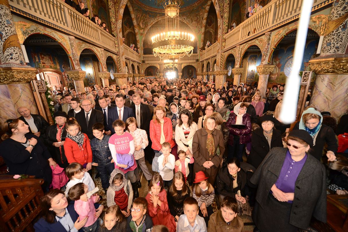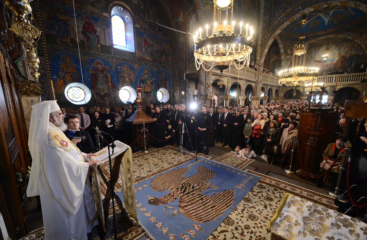 Preafericitul Părinte Daniel, Patriarhul Bisericii Ortodoxe Române, a participat astăzi, 9 noiembrie 2014, în Duminica a XXIV-a după Rusalii, la Sfânta Liturghie oficiată în Catedrala „Sfinții Apostoli Petru și Pavel și Sfântul Ierarh Nicolae” din Deva. Slujba a fost săvârșită de Înaltpreasfinţitul Părinte Laurenţiu, Mitropolitul Ardealului, alături de care s-a aflat un sobor de ierarhi format din Înaltpreasfinţitul Părinte Irineu, Arhiepiscopul Alba Iuliei, Înaltpreasfinţitul Părinte Timotei, Arhiepiscopul Aradului, Preasfinţitul Părinte Lucian, Episcopul Caransebeşului, Preasfinţitul Părinte Sofronie, Episcopul Oradiei, Preasfinţitul Părinte Nicodim, Episcopul Severinului şi Strehaiei, Preasfinţitul Părinte Galaction, Episcopul Alexandriei şi Teleormanului, Preasfinţitul Părinte Gurie, Episcopul Devei şi Hunedoarei, Preasfinţitul Părinte Macarie, Episcopul Ortodox Român al Europei de Nord, Preasfinţitul Andrei Făgărăşeanul, Episcop-vicar al Arhiepiscopiei Sibiului, Preasfinţitul Părinte Paisie Lugojeanul, Episcop-vicar al Arhiepiscopiei Timişoarei, precum şi preoţi.