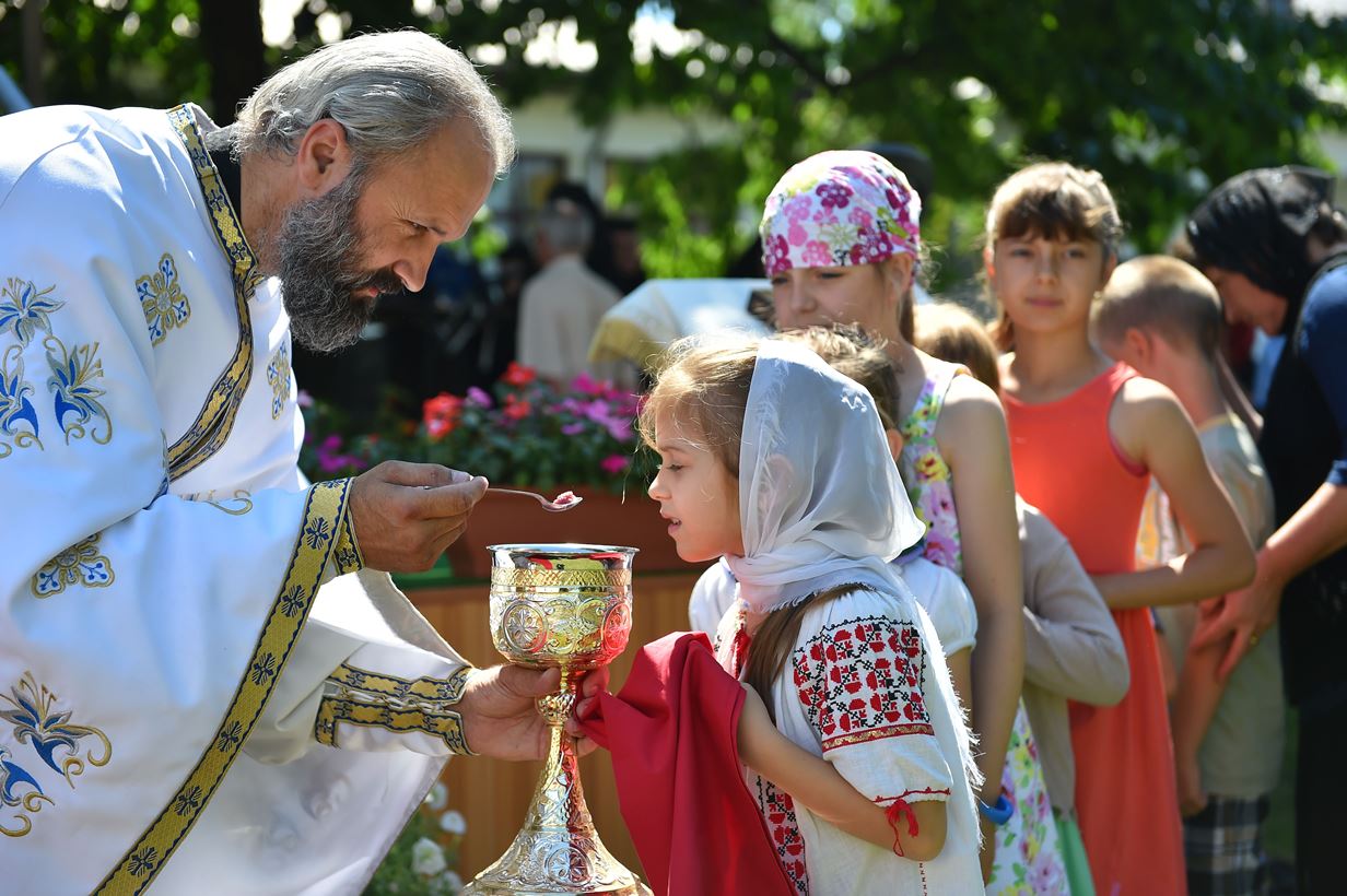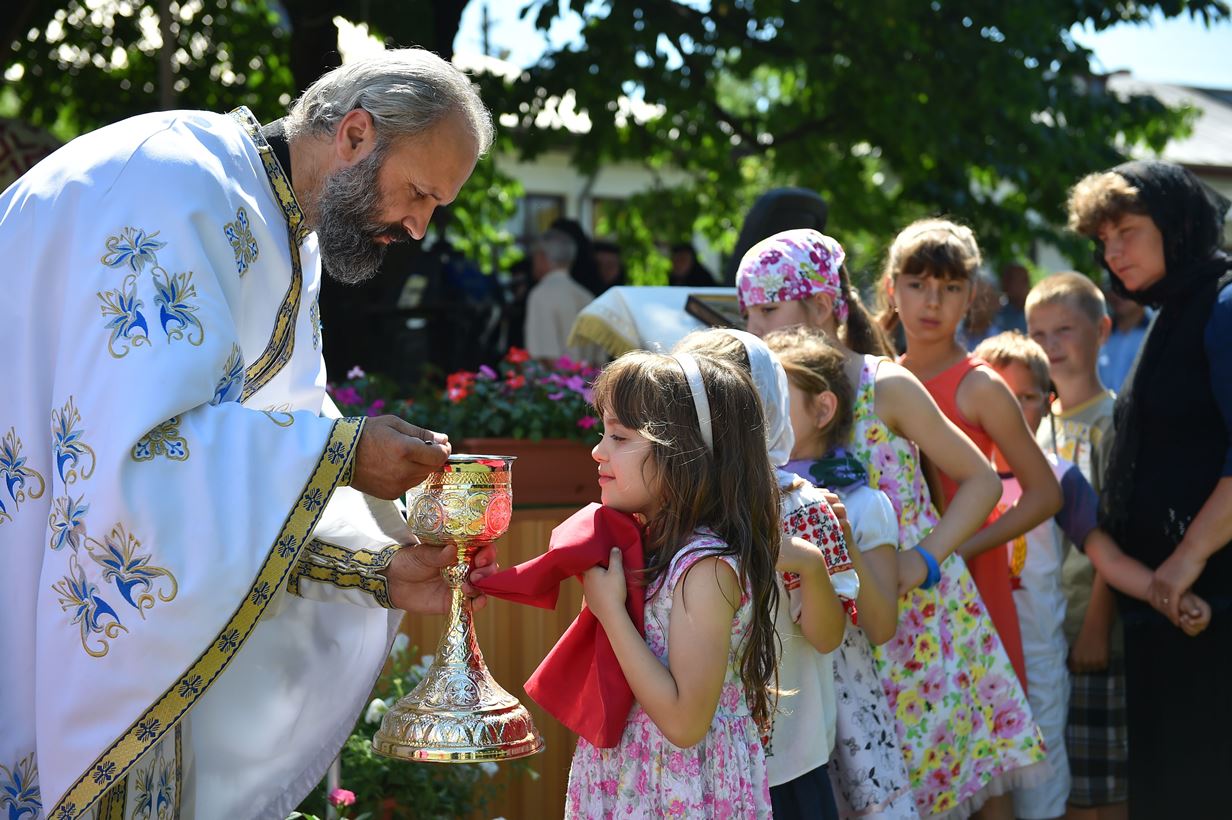 La Sfânta Liturghie a fost prezent și un grup de tineri din localitatea Zamfira și împrejurimi care au purtat costume populare specifice zonei, precum și coronițe din spice de grâu și flori de sânziene potrivite pentru sărbătoarea de astăzi.