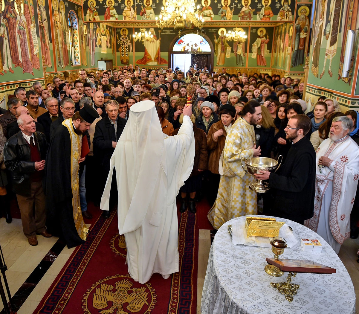 Preafericitul Părinte Daniel, Patriarhul Bisericii Ortodoxe Române, s-a aflat, duminică, 14 februarie 2016, în Parohia Vatra Luminoasă din Protopopiatul Sector 2 Capitală unde a participat la Sfânta Liturghie oficiată de Părintele Ioan Popescu – Protopopul Protoieriei Sector 2 Capitală, Părintele Ovidiu Laurenţiu Stegăruș – Parohul Bisericii „Adormirea Maicii Domnului” - Vatra Luminoasă și de Părintele Marius Marian Petre.