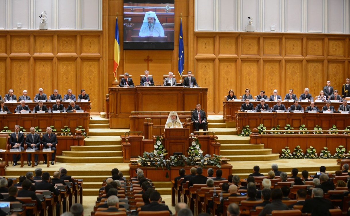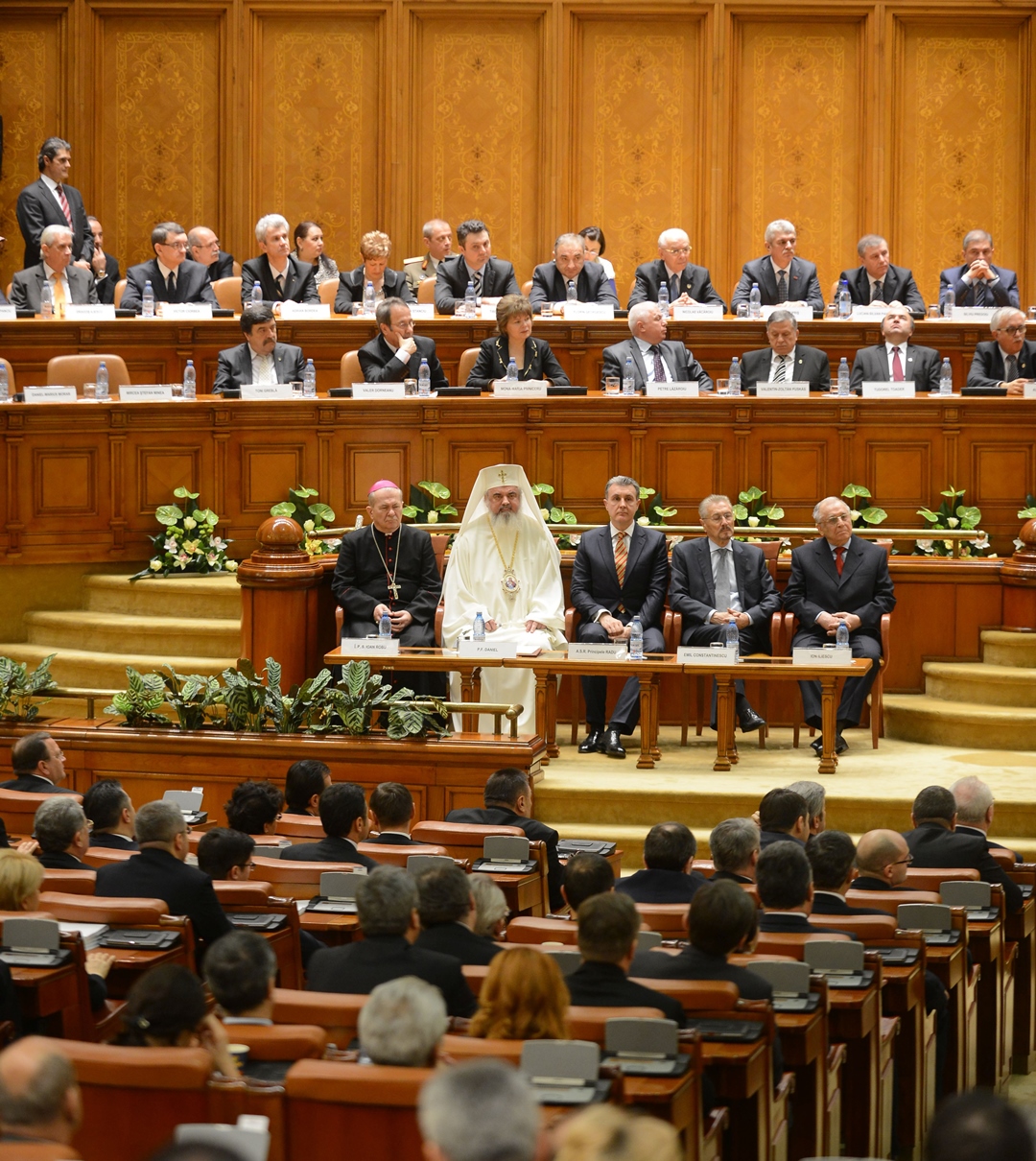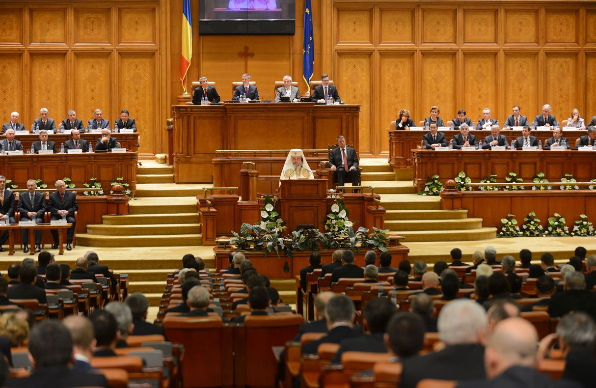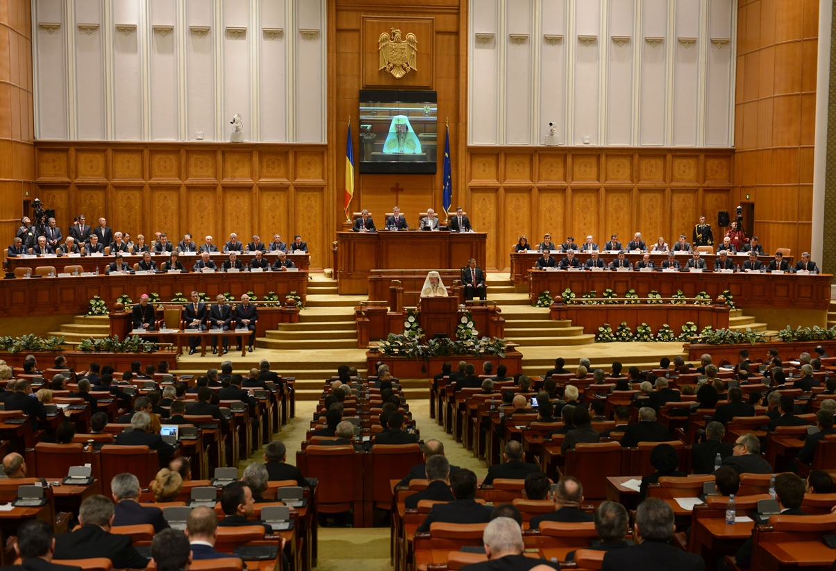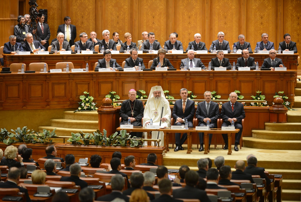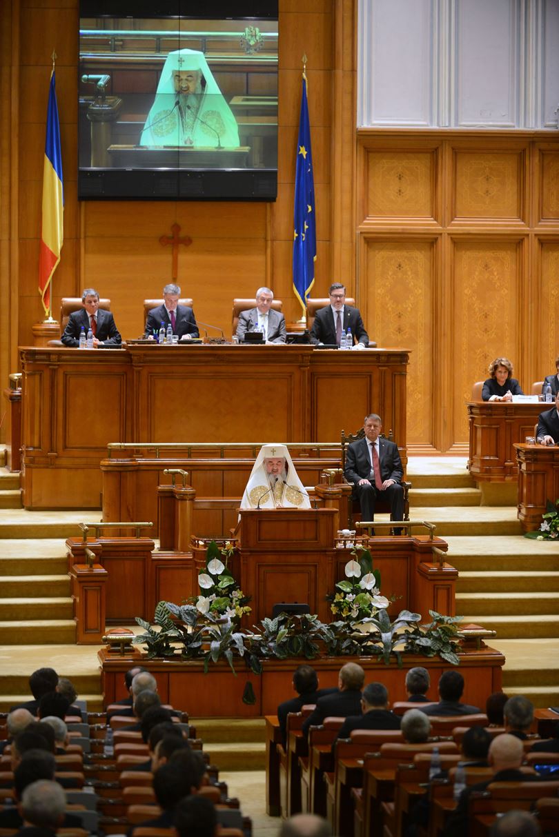 Preafericitul Părinte Daniel, Patriarhul României, s-a aflat astăzi, 21 decembrie 2014, la Palatul Parlamentului unde în faţa Camerelor reunite a avut loc ceremonia de învestire şi depunere a jurământului a Domnului Klaus Iohannis, noul Preşedinte al României.