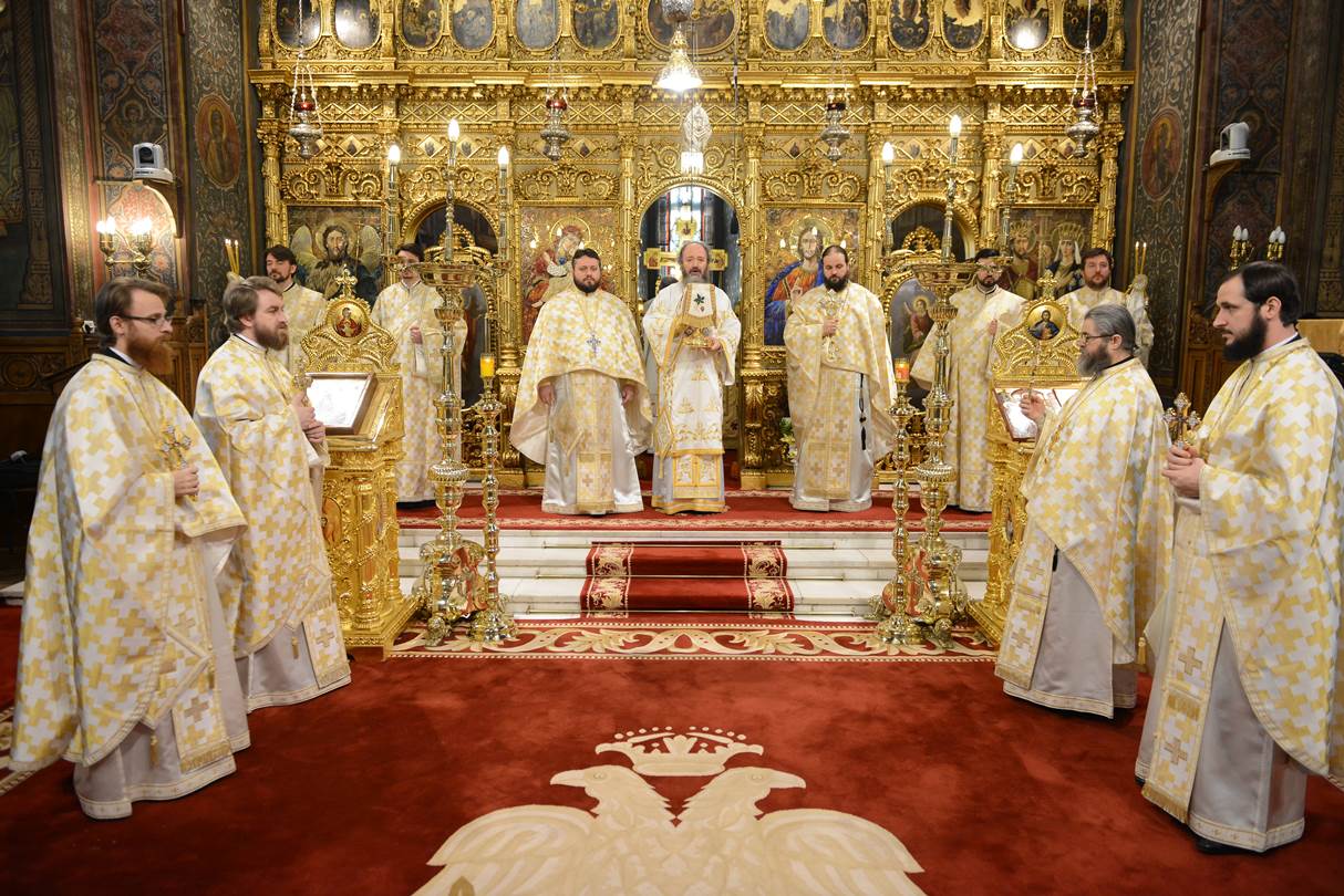 La Catedrala Patriarhală, Sfânta Liturghie a fost oficiată de Preafericitul Părinte Daniel, Patriarhul Bisericii Ortodoxe Române, alături de care s-au aflat cei doi episcopi vicari patriarhali, Preasfințitul Părinte Varlaam Ploieșteanul și Preasfințitul Părinte Ieronim Sinaitul.