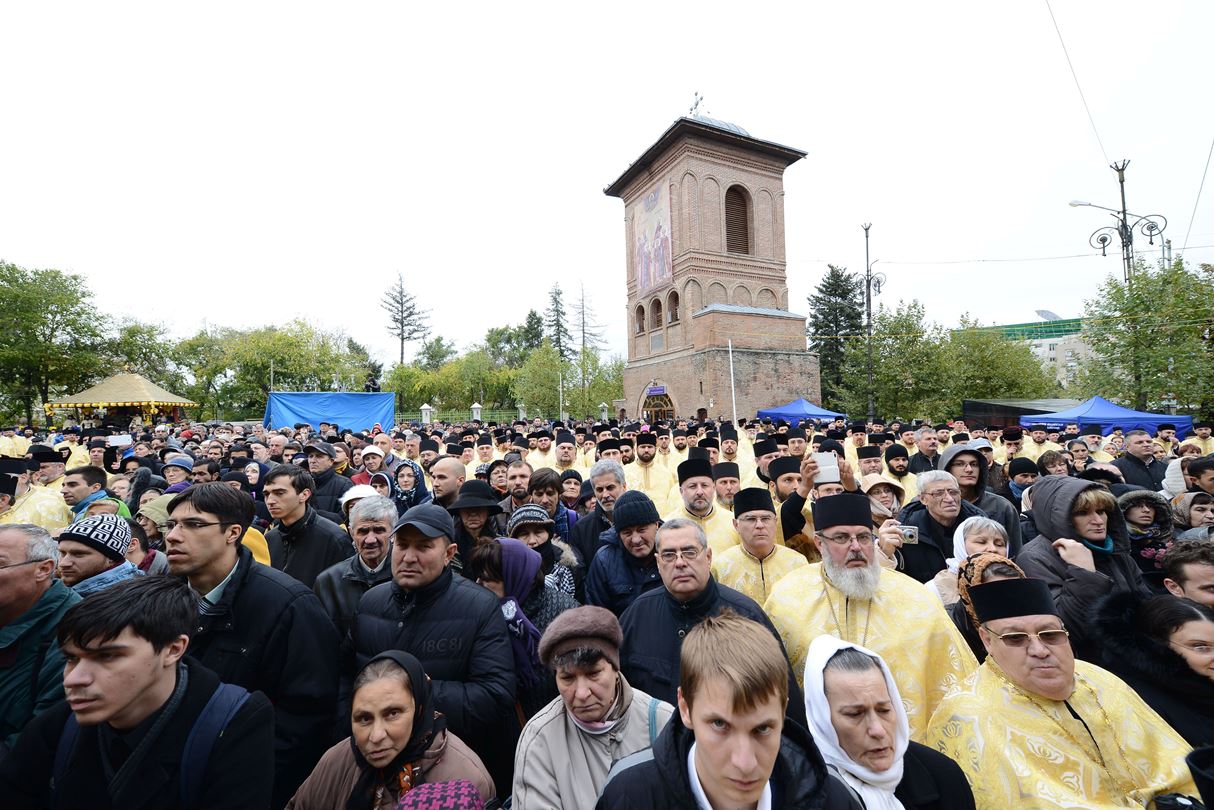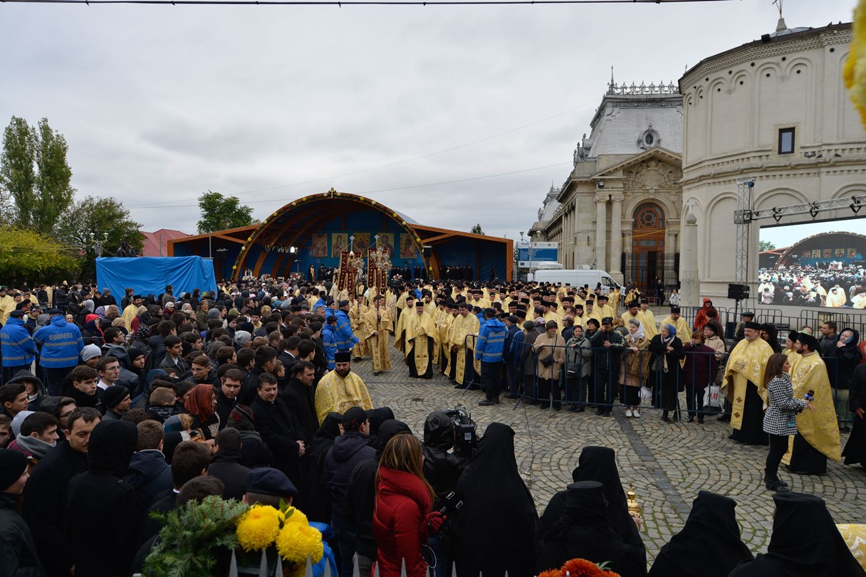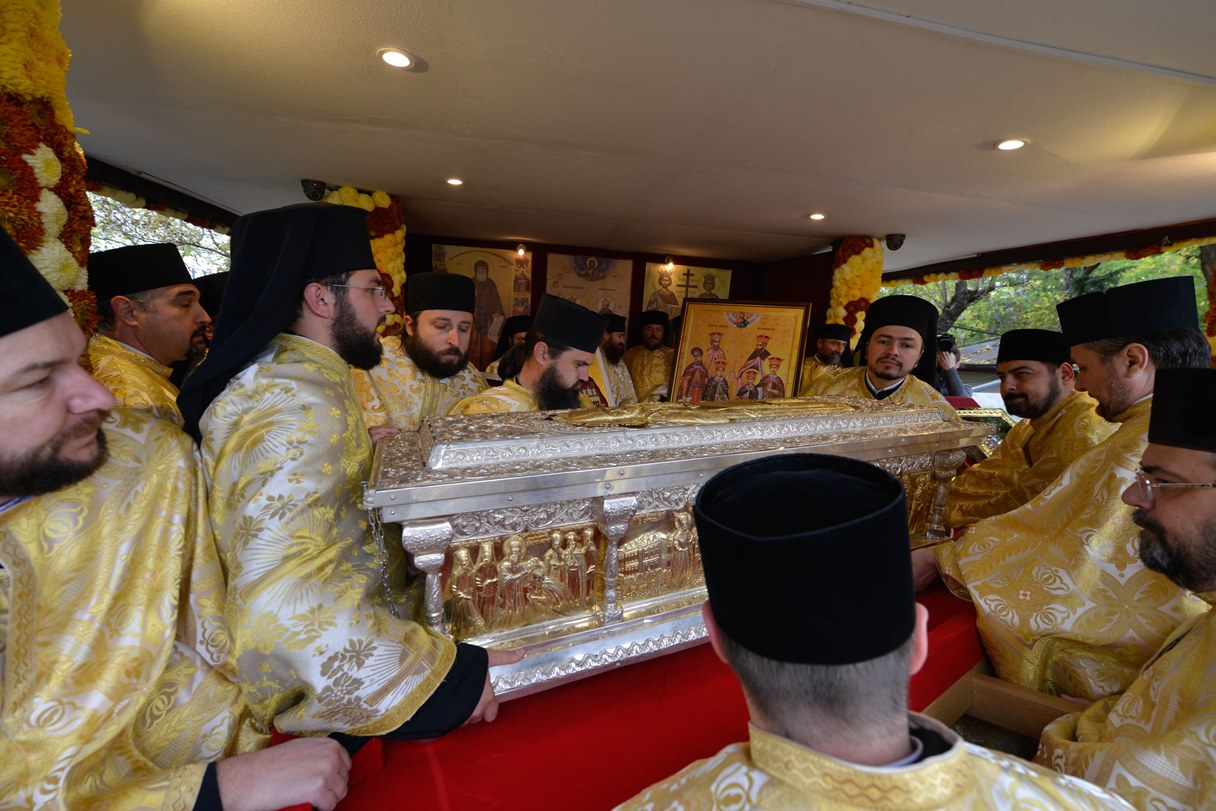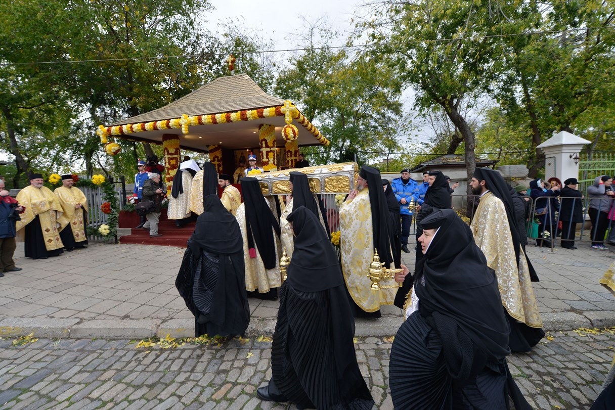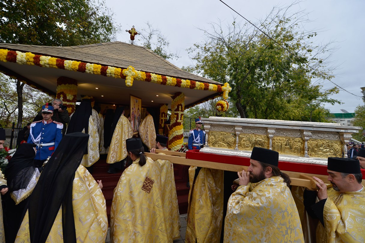 Apoi, icoana şi sfintele moaşte au fost aşezate spre închinare în baldachinul amenajat pe esplanada Catedralei Patriarhale pentru a fi venerate de către cler şi credincioşi până în ziua de luni, 27 octombrie 2014.