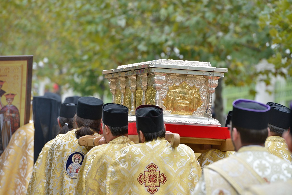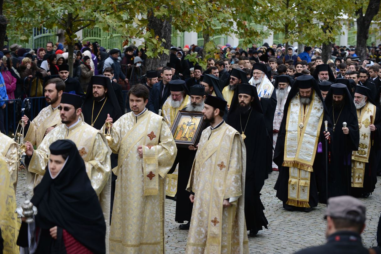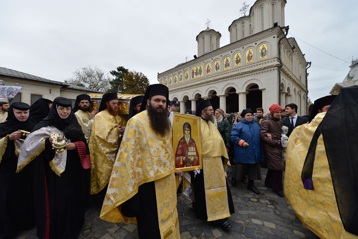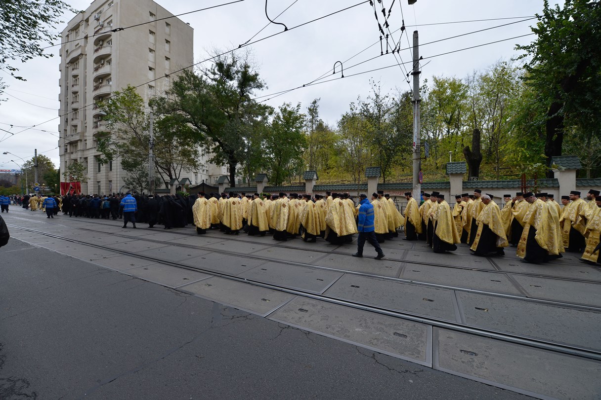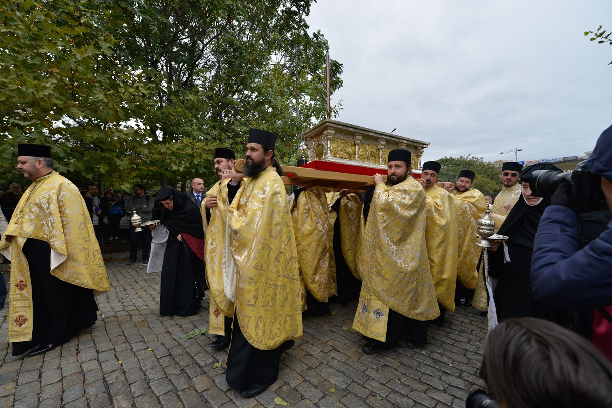 Începând cu ora 12:50 au pornit două procesiuni simultan. Procesiunea cu racla purtând moaştele Sfântului Cuvios Dimitrie cel Nou a pornit de la Catedrala Patriarhală spre biserica Sfântul Nicolae – Vlădica pe Bulevardul Regina Maria mergând până la baza Colinei Bucuriei.