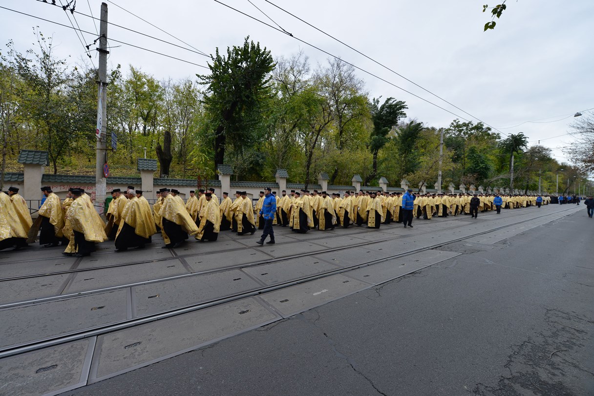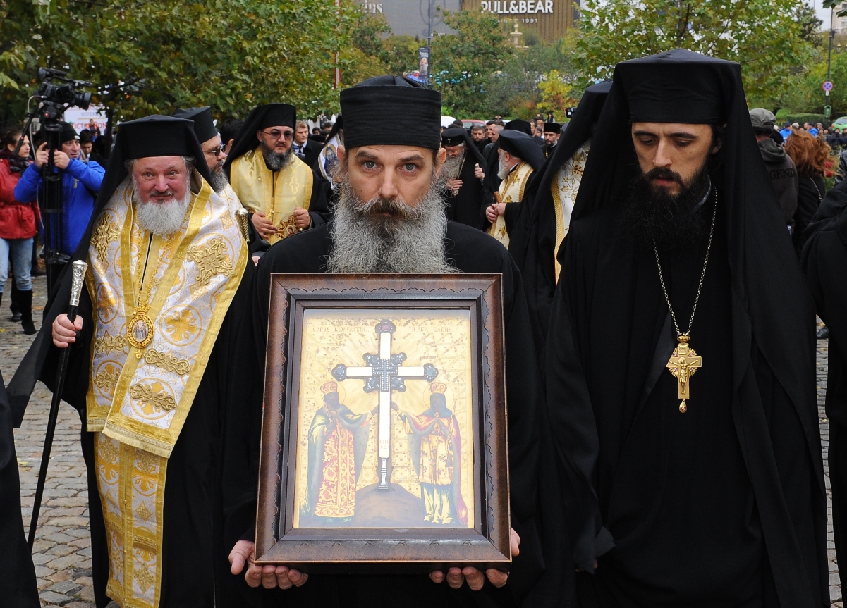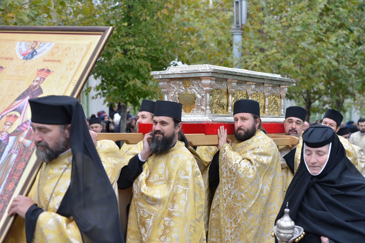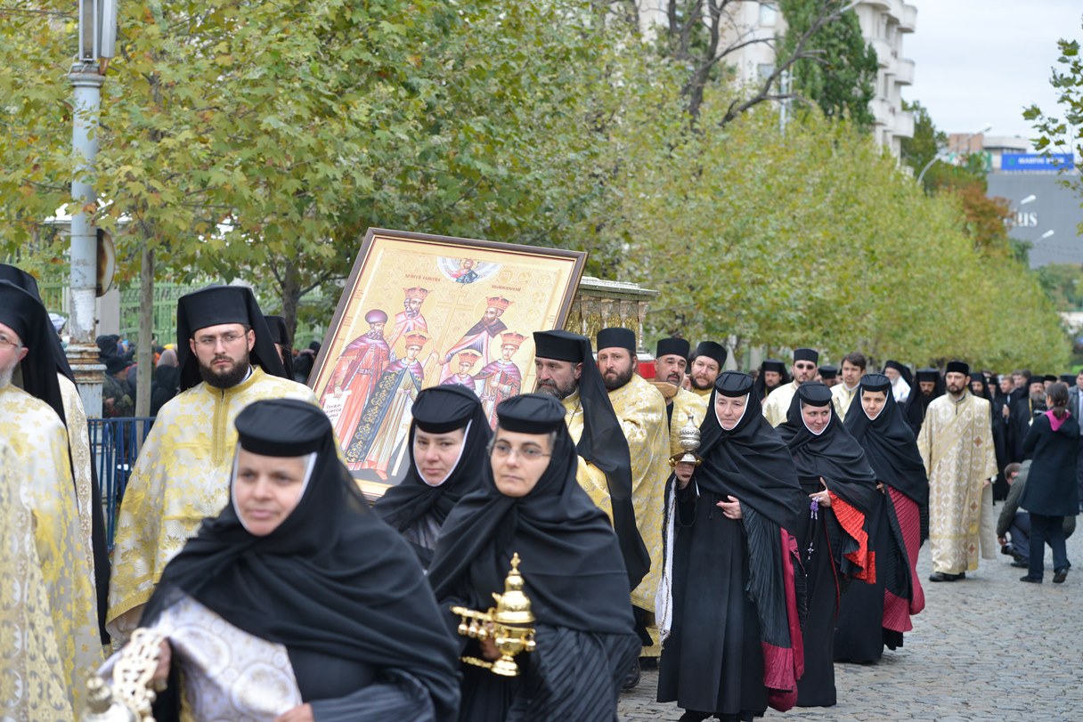Începând cu ora 12:50 au pornit două procesiuni simultan. Procesiunea cu racla purtând moaştele Sfântului Cuvios Dimitrie cel Nou a pornit de la Catedrala Patriarhală spre biserica Sfântul Nicolae – Vlădica pe Bulevardul Regina Maria mergând până la baza Colinei Bucuriei.