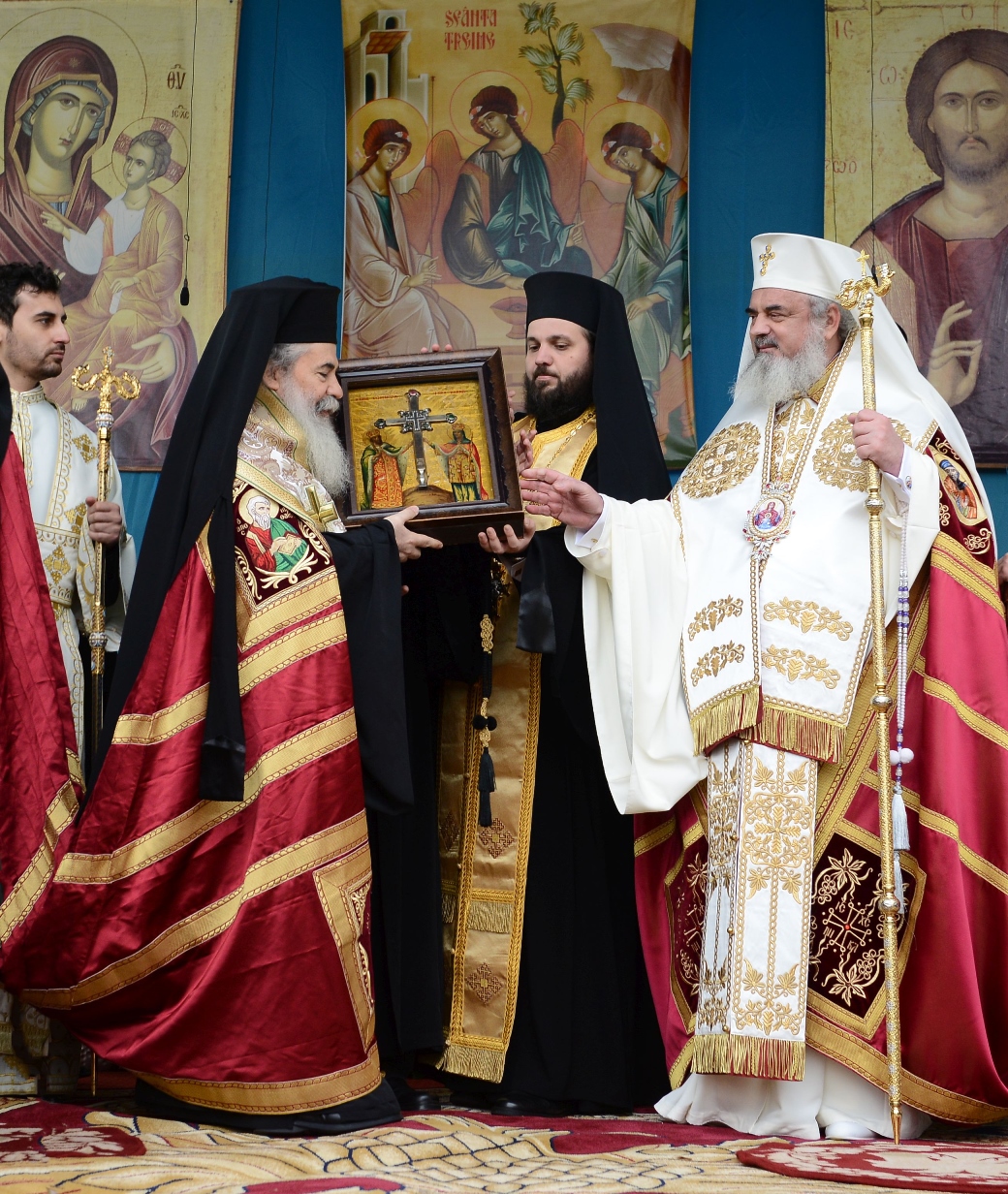 „Mulţumim Preafericirii Voastre, Preafericite Părinte Patriarh Teofil pentru acest mare dar, sfânt şi binecuvântător şi mai ales vă mulţumim că aţi răspuns imediat cu multă generozitate. Gândul acesta de a vă solicita să veniţi cu Lemnul Sfintei Cruci de la Ierusalim a venit mai târziu cu câteva zile înainte, dar Preafericirea Voastră aţi fost atât de generos şi de bucuros că să aduceţi ca semn de binecuvântare Lemnul Sfintei Cruci încât noi am simţit că bucurie a venit prin Cruce la toată lumea. Vă mulţumim mult de tot şi suntem onoraţi şi în acelaşi timp binecuvântaţi de prezenţa Preafericirii Voastre şi a delegaţiei care vă însoţeşte din partea Patriarhiei Ierusalimului”.
