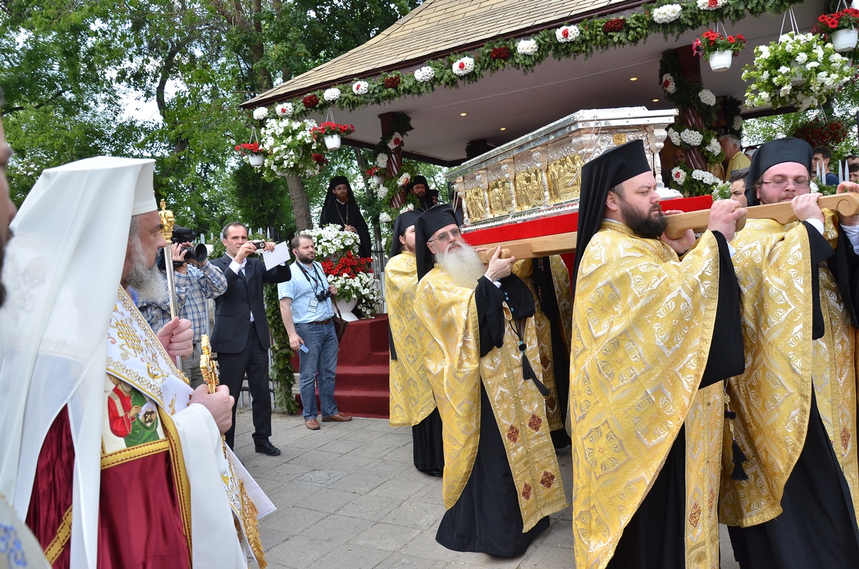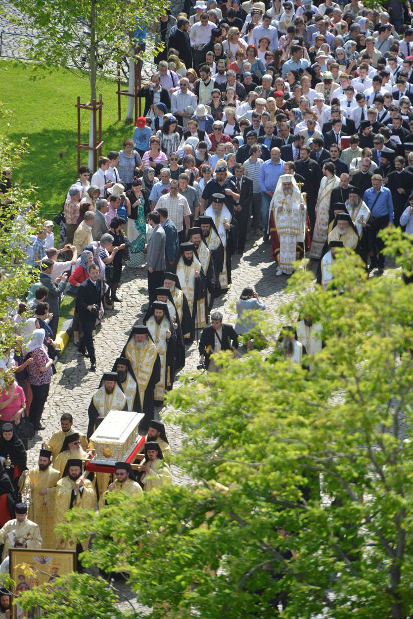 La ceremonie au luat parte reprezentaţi ai Bisericii Ortodoxe Române, în frunte cu Patriarhul ţării, Preafericitul Părinte Daniel şi nu în cele din urmă mulţi români care au dorit astfel să-i aducă cinstire sfântului, fiind prezenţi peste 10.000 de oameni.
