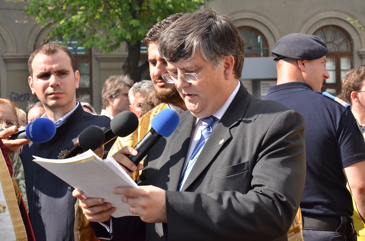 Aici, rectorul Universităţii Bucureşti a susţinut o alocuţiune.