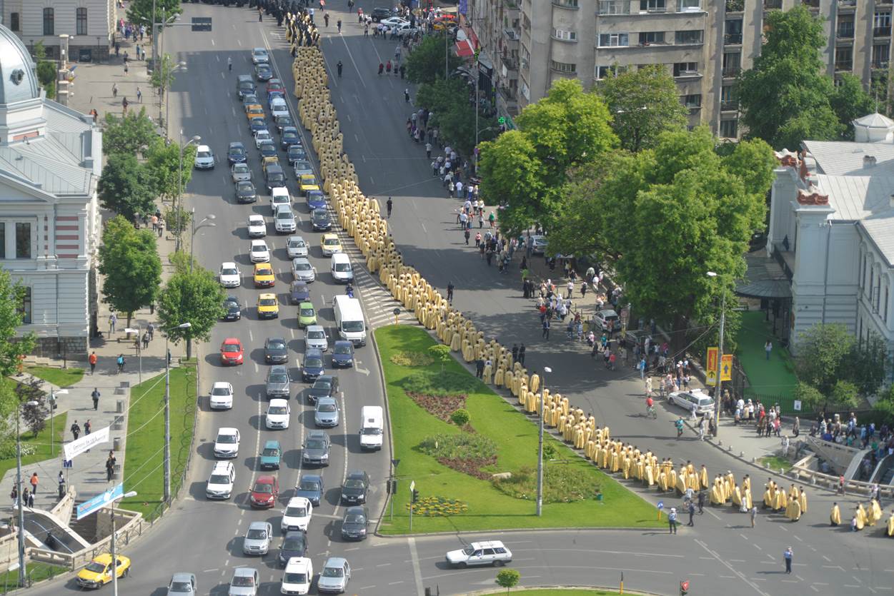 Traseul este similar celui pe care, în urmă cu 80 de ani, în ziua de 21 mai 1934, a avut loc procesiunea solemnă de reînhumare a osemintelor Domnitorului Martir Constantin Brâncoveanu de la Catedrala patriarhală până la Biserica “Sfântul Gheorghe Nou” din Bucureşti.