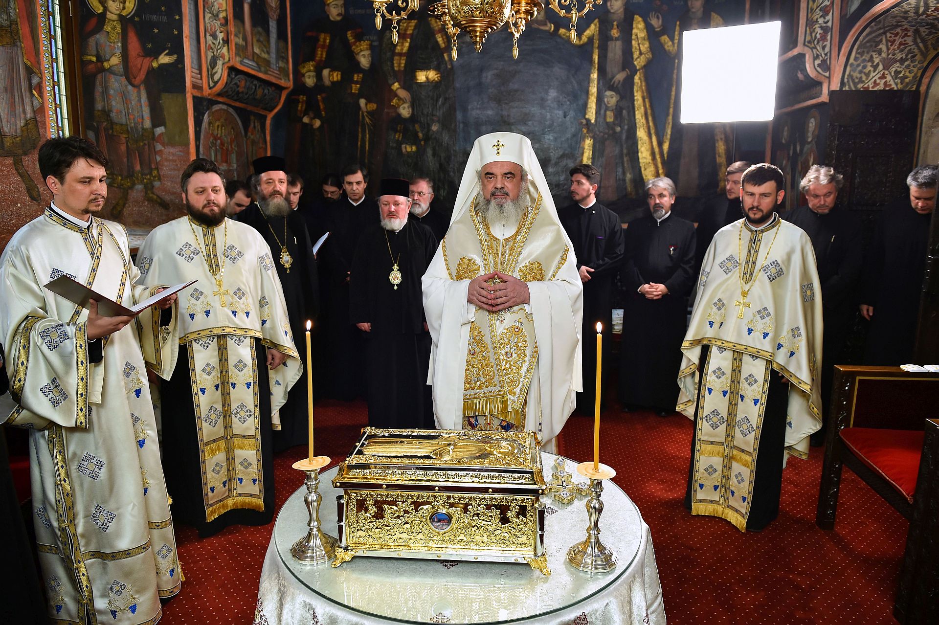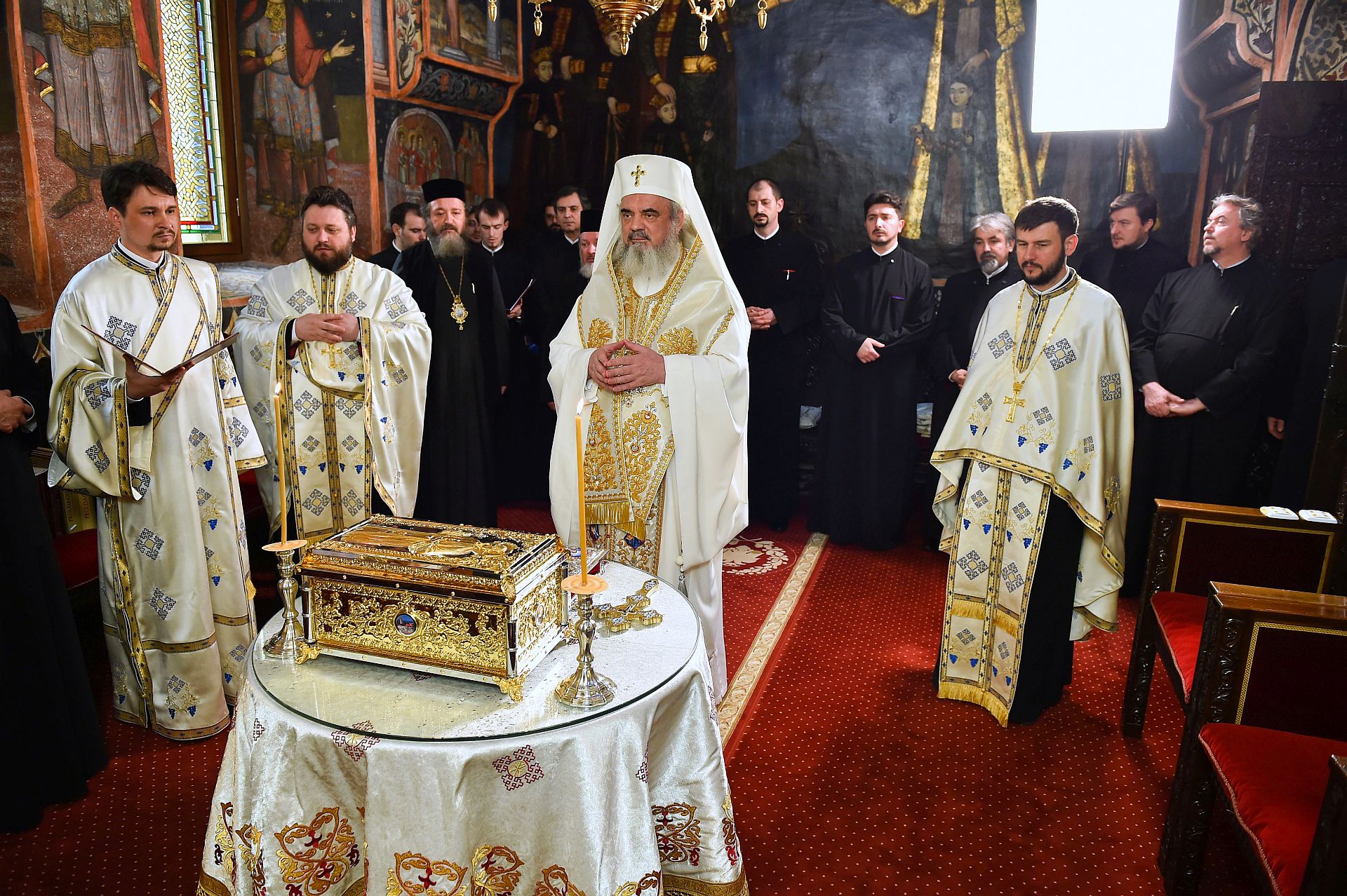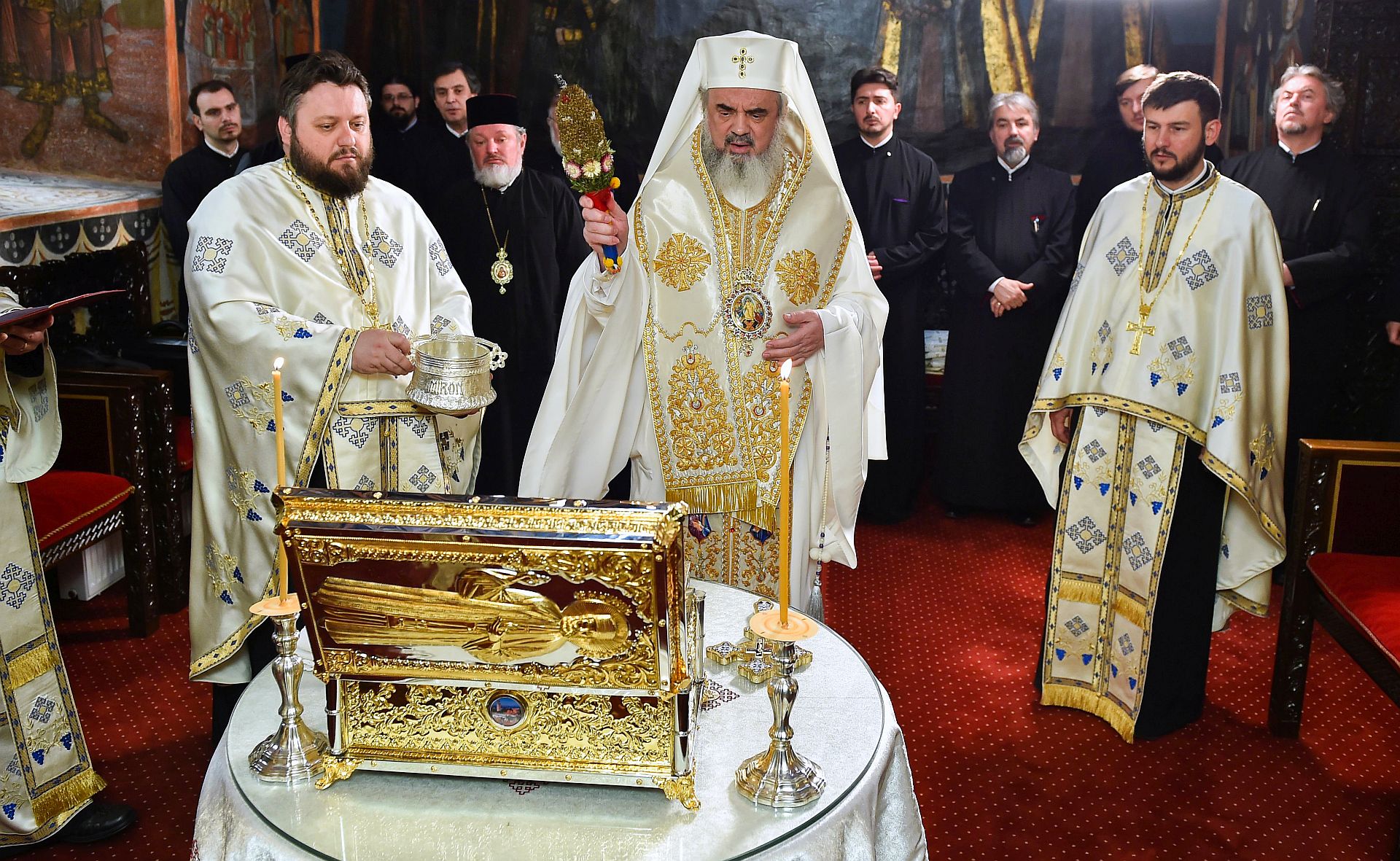 Slujba de sfinţire a avut loc în Paraclisul istoric „Sfântul Mare Mucenic Gheorghe” din Reşedinţa Patriarhală, în prezenţa Preasfinţitului Părinte Varlaam Ploieşteanul, Episcop-vicar al Patriarhal, a Preasfinţitului Părinte Ieronim Sinaitul, Episcop-vicar patriarhal, precum şi a membrilor Permanenţei Consiliului Naţional Bisericesc.