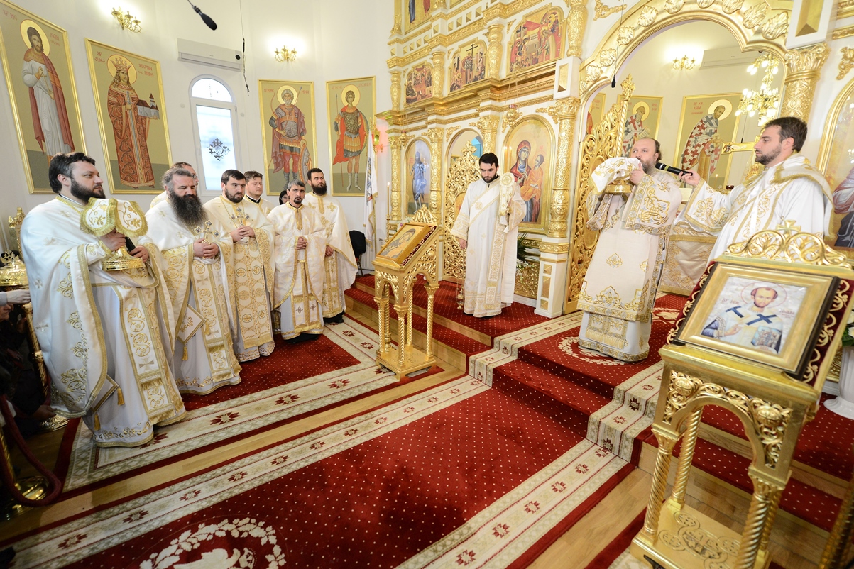 Paraclisul Catedralei Mântuirii Neamului şi-a sărbătorit astăzi, 13 noiembrie 2014, cel de-al treilea hram, pe Sfântul Ioan Gură de Aur, Arhiepiscopul Constantinopolului. Sfânta Liturghie a fost oficiată de Preasfinţitul Părinte Timotei Prahoveanul, Episcop-vicar al Arhiepiscopiei Bucureştilor, înconjurat de un sobor de preoţi şi diaconi. La slujbă au fost prezenţi sute de credincioşi care au avut ocazia să se închine la racla ce adăposteşte un fragment din sfintele moaștele Sfântului Ioan Gură de Aur, aceasta fiind așezată în pridvorul paraclisului.