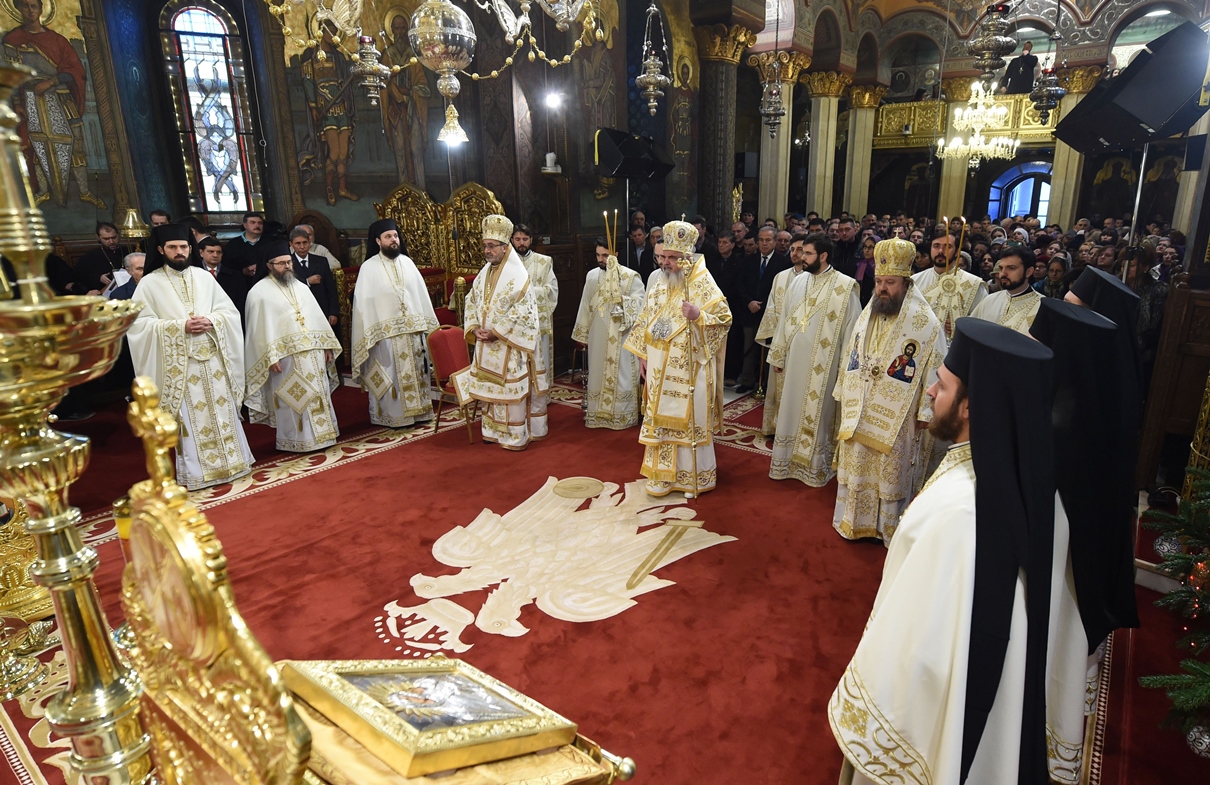 În ziua acestei mari sărbători, Sfânta Liturghie la Catedrala Patriarhală a fost săvârșită de Preafericitul Părinte Daniel, Patriarhul Bisericii Ortodoxe Române. Alături de Preafericirea Sa s-au aflat şi Preasfinţitul Părinte Timotei Prahoveanul, Episcop-vicar al Arhiepiscopiei Bucureştilor şi Preasfinţitul Părinte Qais, Episcop de Erzurum, înconjuraţi de un sobor de preoţi şi diaconi.