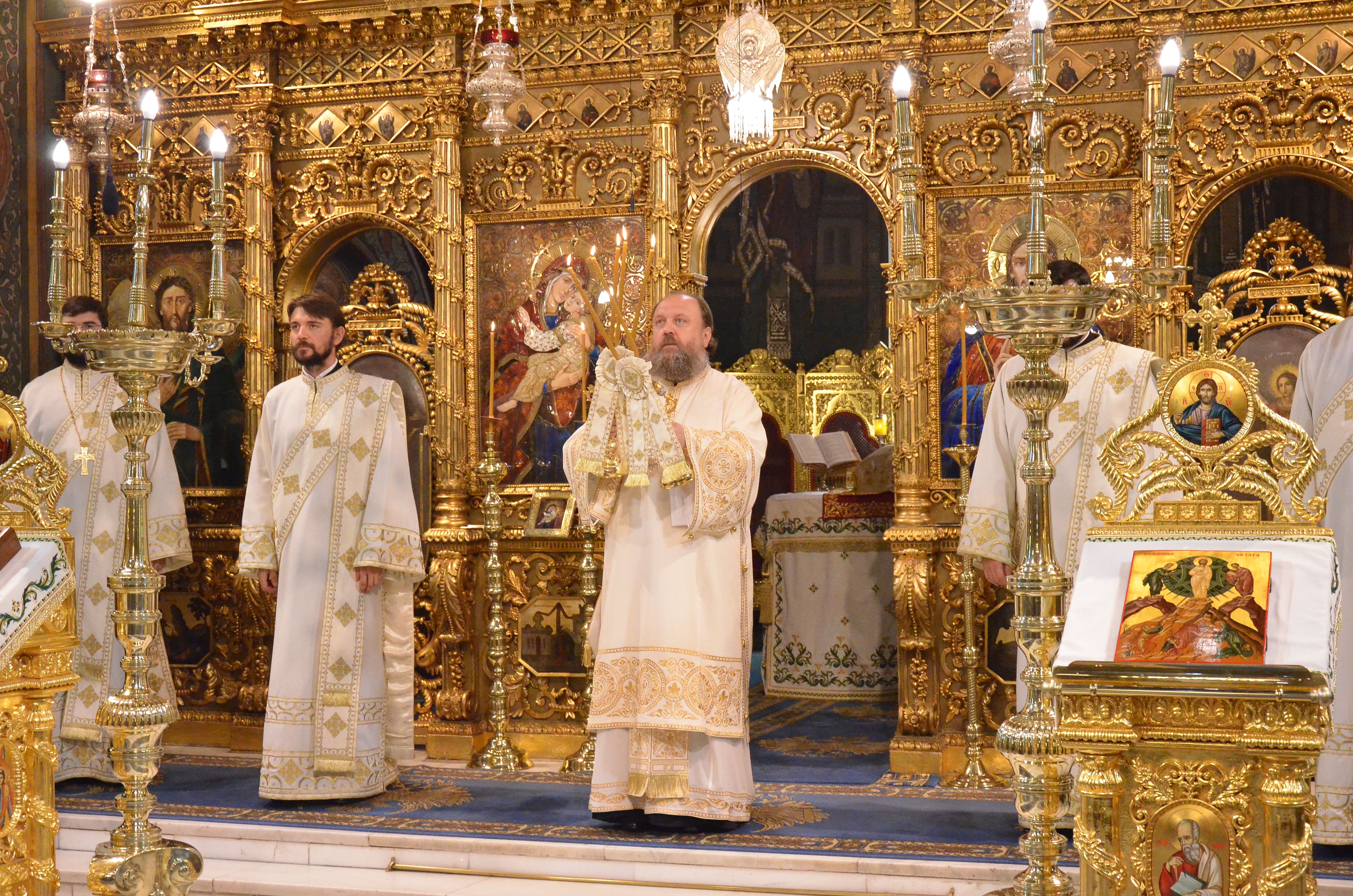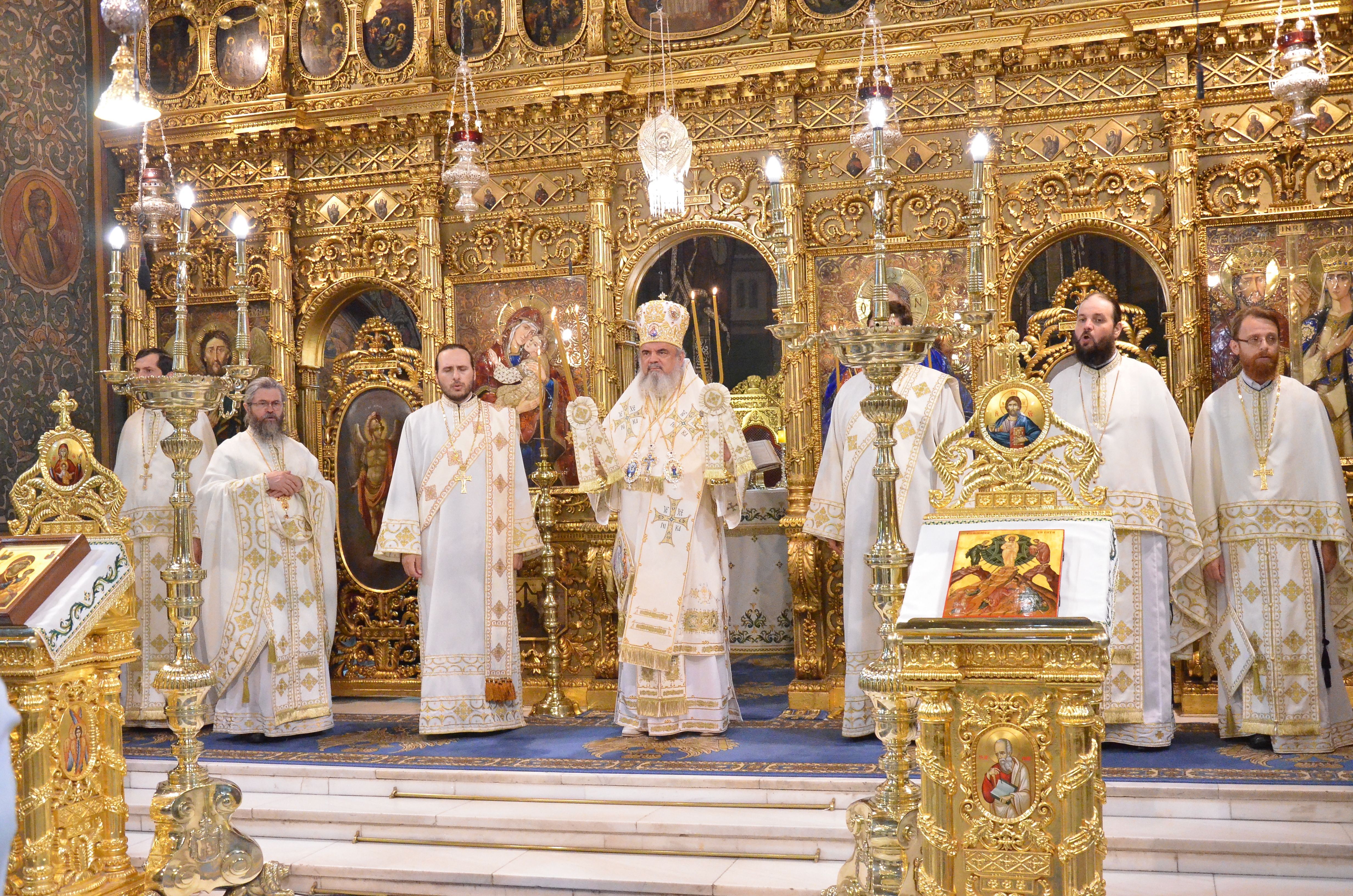 La Catedrala Patriarhală, cu prilejul acestei sărbători, slujba Sfintei Liturghii a fost oficiată de către Preafericitul Părinte Daniel, Patriarhul României. Alături de Preafericirea Sa a slujit şi Preasfinţitul Părinte Timotei Prahoveanul, Episcop Vicar al Arhiepiscopiei Bucureştilor. Din soborul slujitor au făcut parte şi Părintele Arhimandrit Teofil Anăstăsoaie, Reprezentantul Patriarhiei Române la Locurile Sfinte şi Superiorul Aşezămintelor Româneşti de la Ierusalim, Ierihon şi Iordan, părintele arhimandrit Clement Haralam, Mare Eclesiarh al Catedralei Patriarhale, preoţi şi diaconi.