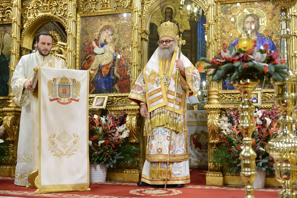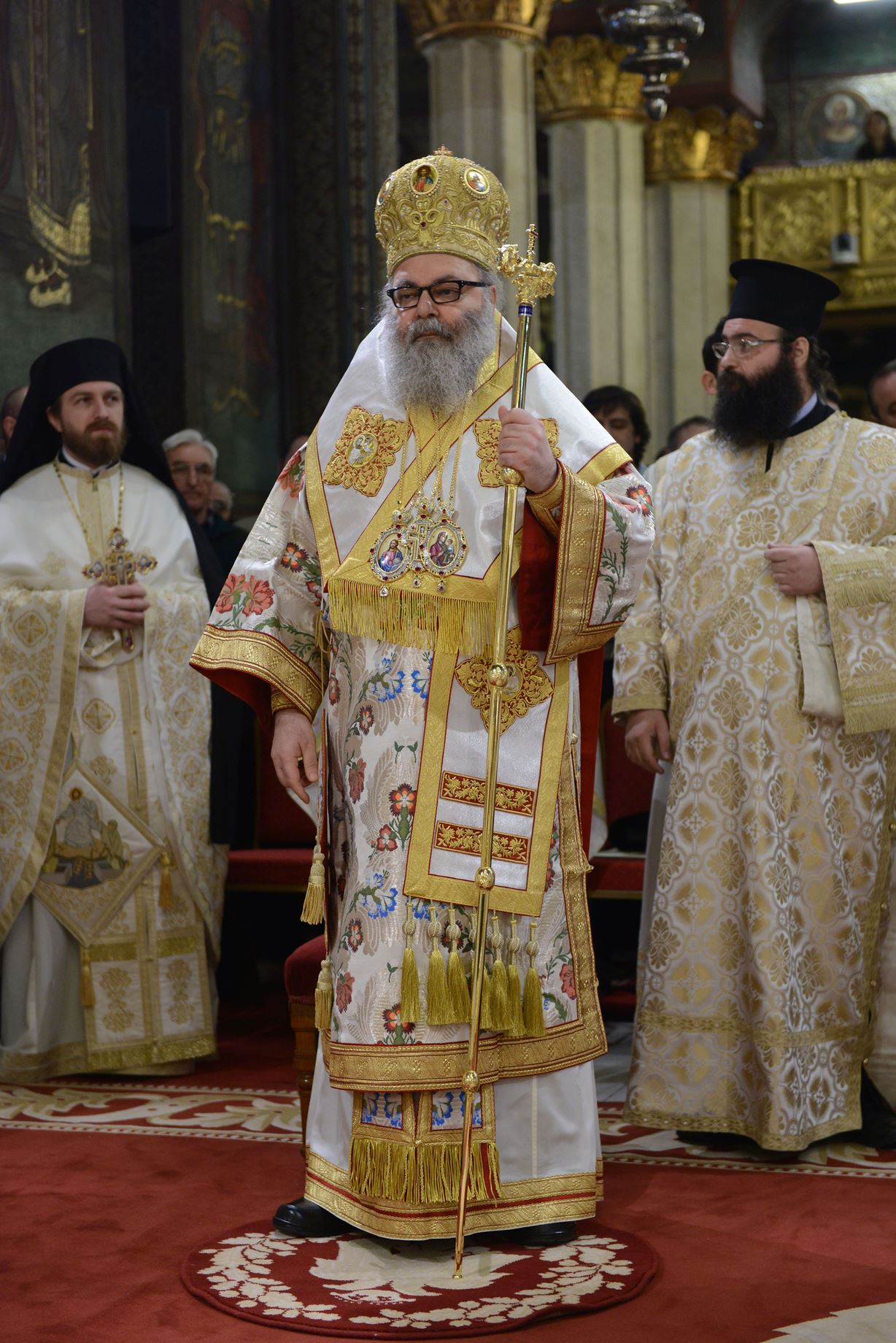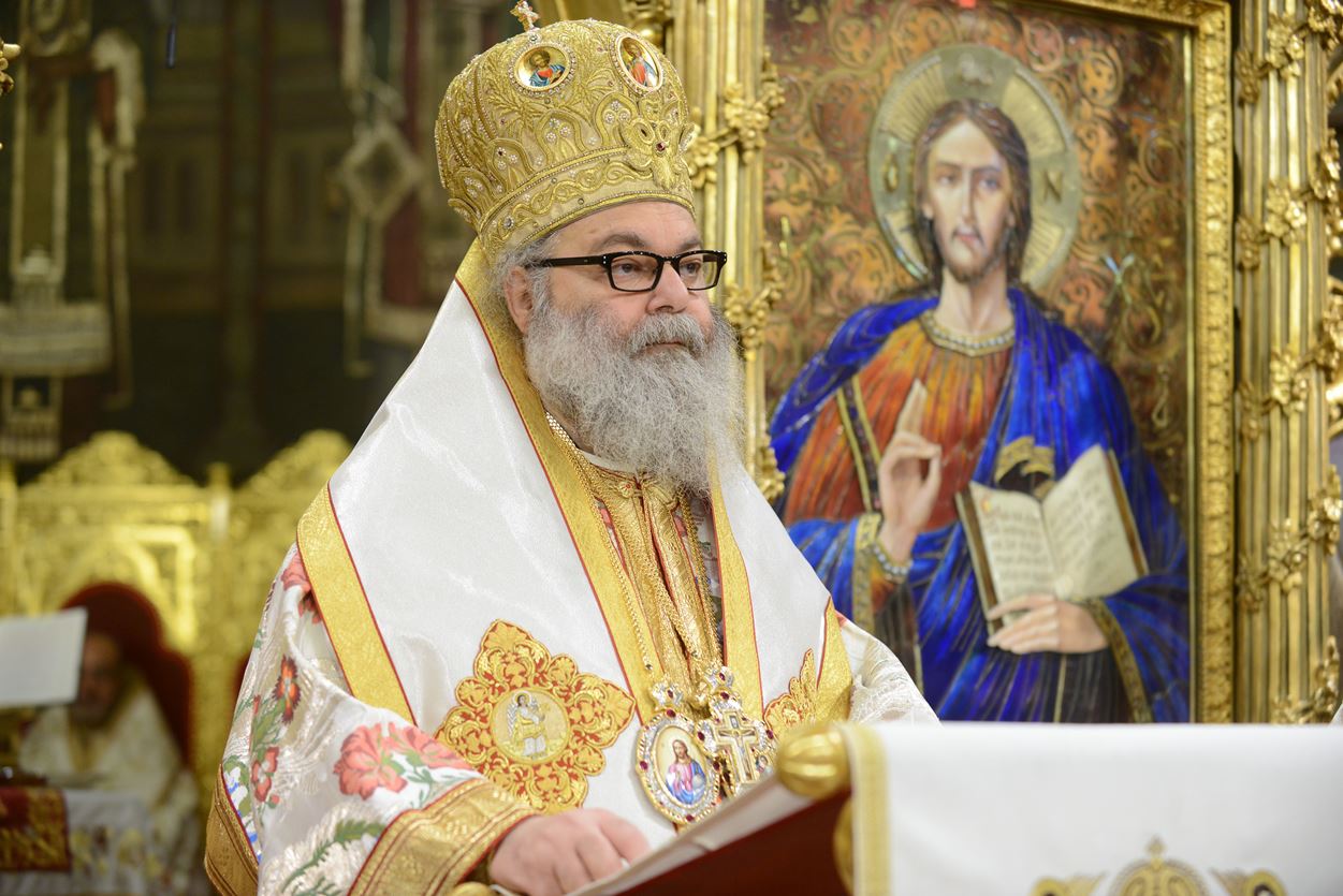 „Preafericirea Voastră, Înaltpreasfinţiile Voastre, Preasfinţiile Voastre, Preacuvioşi şi Preacucernici Părinţi, iubiţi credincioşi şi credincioase, mulţumim lui Dumnezeu că am săvârşit împreună liturghia în această Sfântă Catedrală având ca invitat de onoare pe Preafericirea Sa, Părintele Patriarh Ioan al Antiohiei şi al Întregului Orient. Este o mare bucurie pentru noi ca să ne vedem faţă către faţă şi să slujim împreună Sfânta şi Dumnezeiasca Liturghie şi să ne împărtăşim din acelaşi potir cu Domnul şi Mântuitorul nostru Iisus Hristos. Bucuria este mare mai ales pentru că nu am putut participa la întronizarea Preafericirii Voastre ca Patriarh al Antiohiei şi al Întregului Orient, dar acum aţi venit aici în această catedrală care a fost în 1658 sfinţită de Patriarhul Antiohiei Macarie al III-lea Zaim. În această catedrală au mai slujit mai mulţi patriarhi ai Antiohiei, dar acum Preafericirea Voastră ne-aţi făcut bucuria să venim să participaţi la sărbătoarea Sfântului Apostol Andrei, cel Întâi Chemat care este Apostolul Românilor. El a predicat Evanghelia mai întâi la Ierusalim, apoi în Iudeea, în Galileea, în Samaria, în Asia Mică (Turcia de azi), în Sciţia Mică (Dobrogea de azi), în Sciţia Mare (teritoriul Ucrainei de azi) şi apoi în Grecia şi a murit martir în oraşul Patras unde se află acum Capul lui după ce a stat o vreme la Roma şi prin anii 1960 a fost restituit Bisericii Greciei.