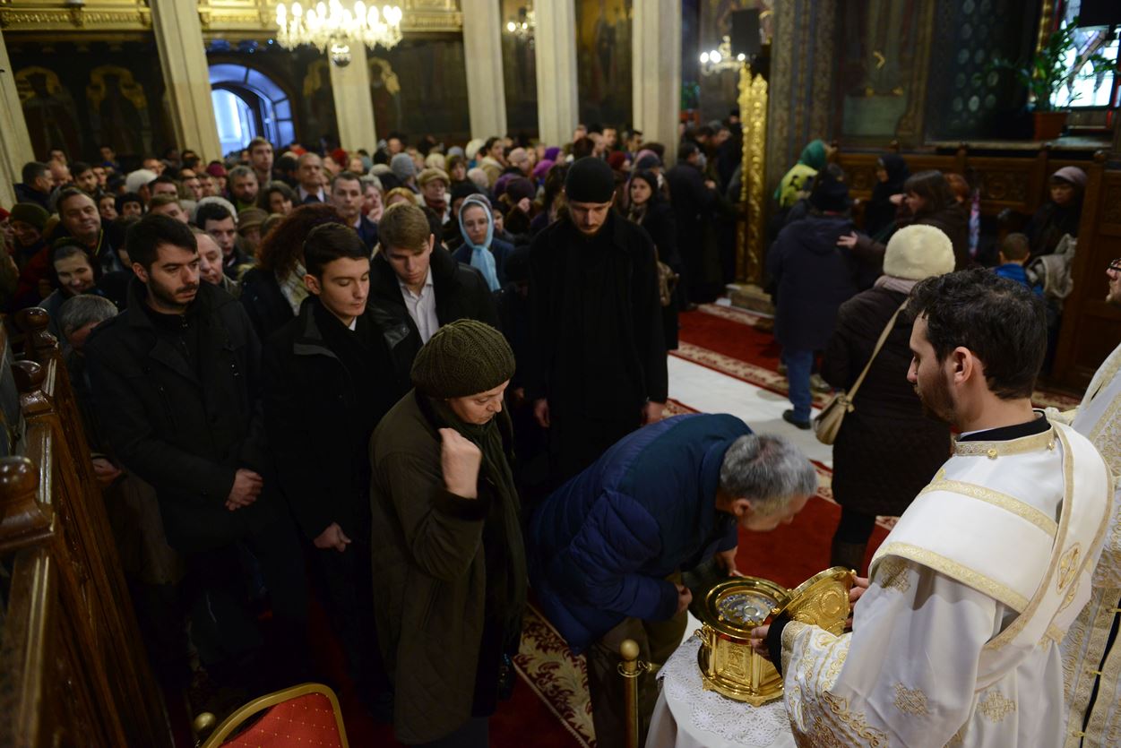 Racla cu un fragment din moaştele Sfântului Apostol Andrei, Ocrotitorul României care se află în Paraclisul Reşedinţei Patriarhale a fost adusă şi aşezată spre închinare credincioşilor, în Catedrala Patriarhală.