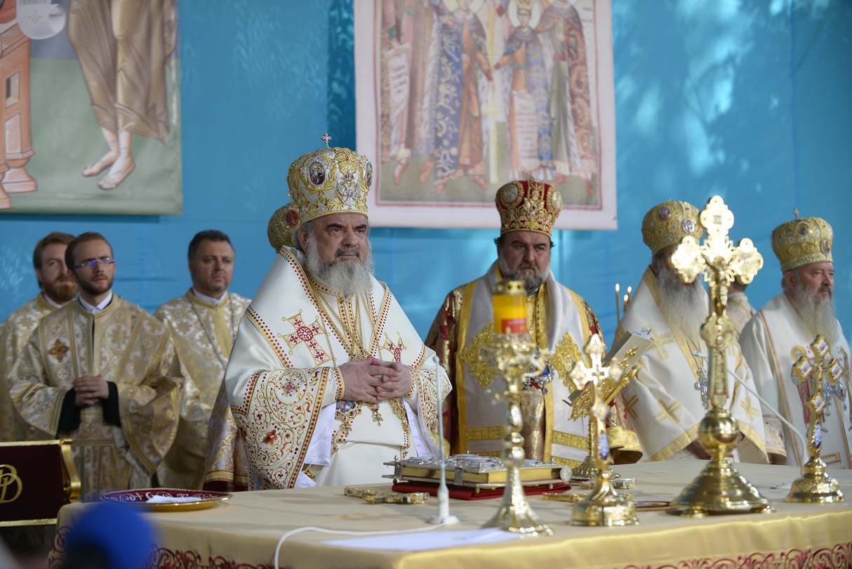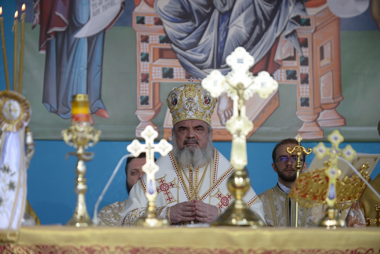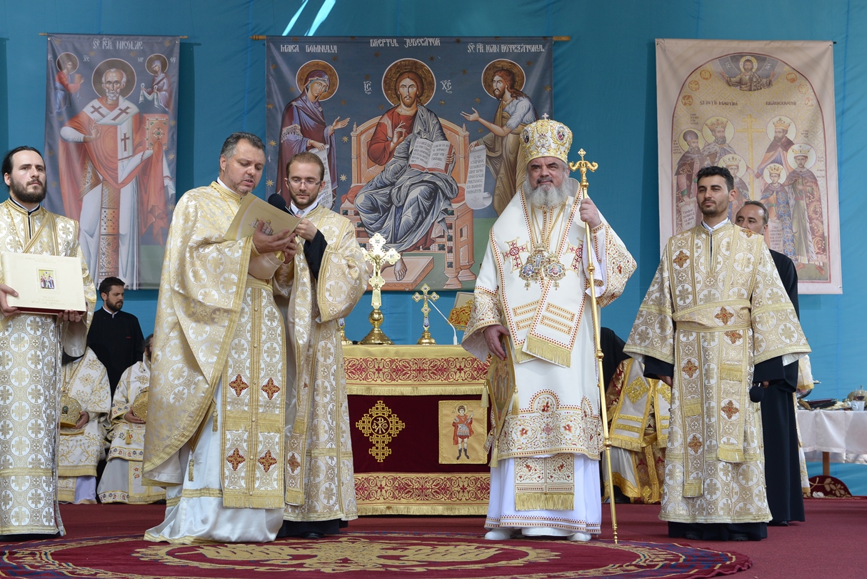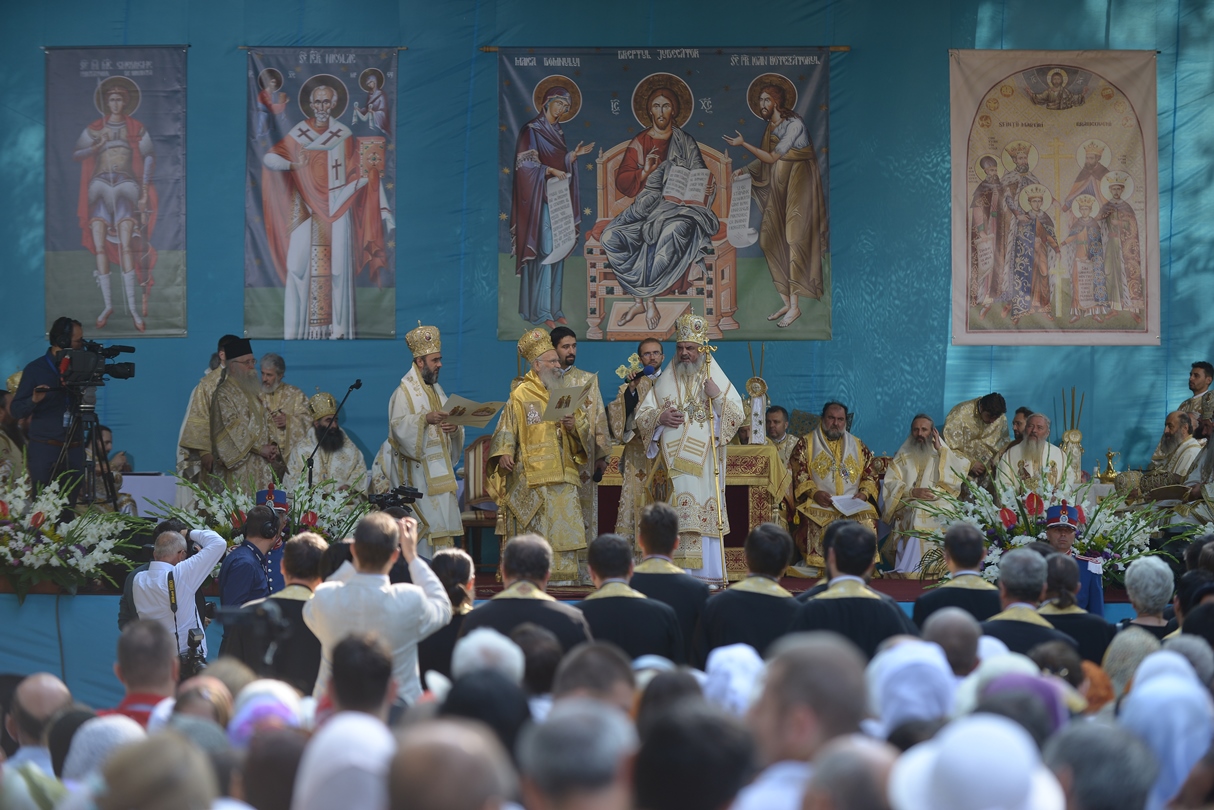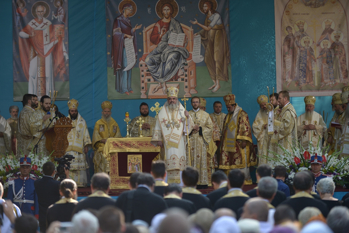 În continuare, de la orele 9.30, Întâistătătorul Bisericii Ortodoxe Române a oficiat Sfânta Liturghiepe un podium special amenajat lângă biserica Sfântul Gheorghe Nou.