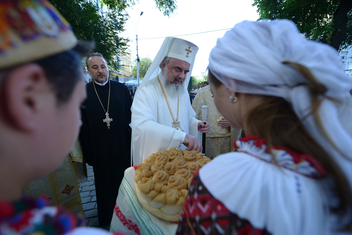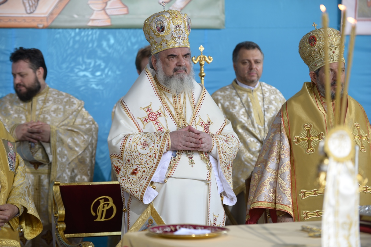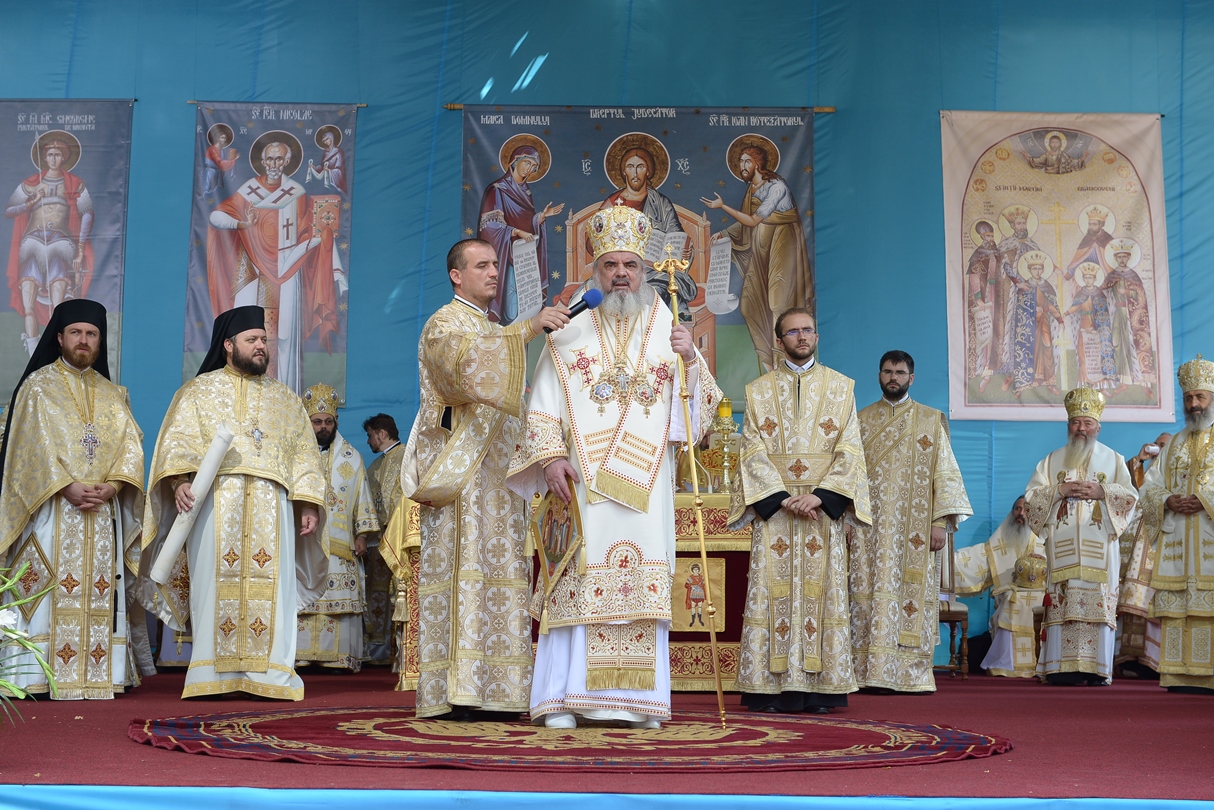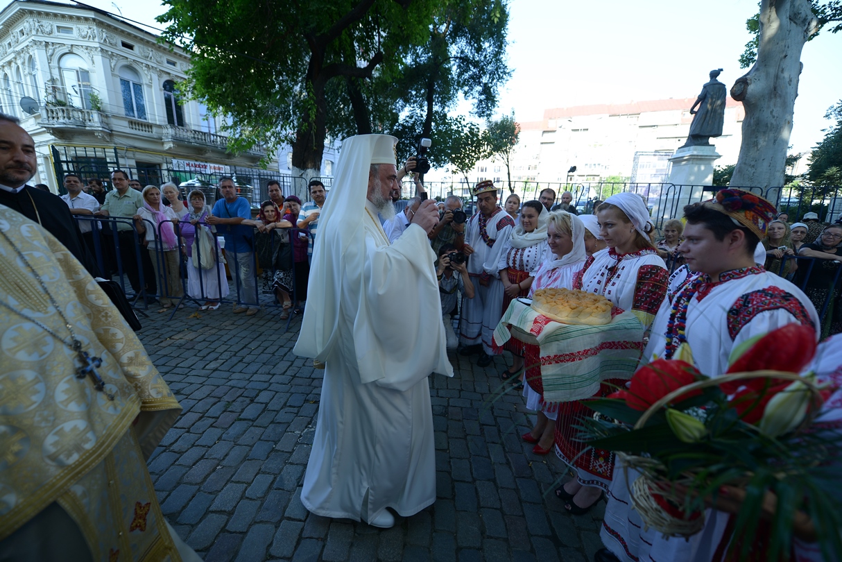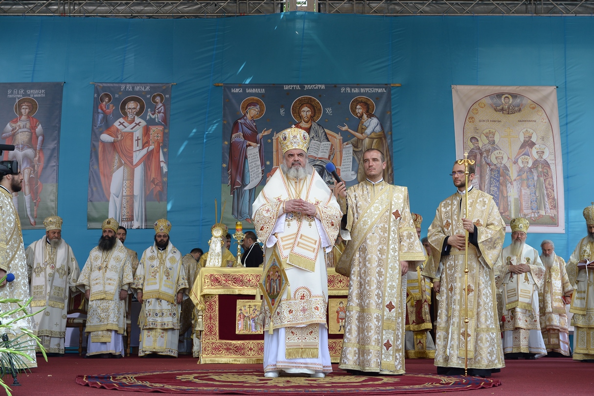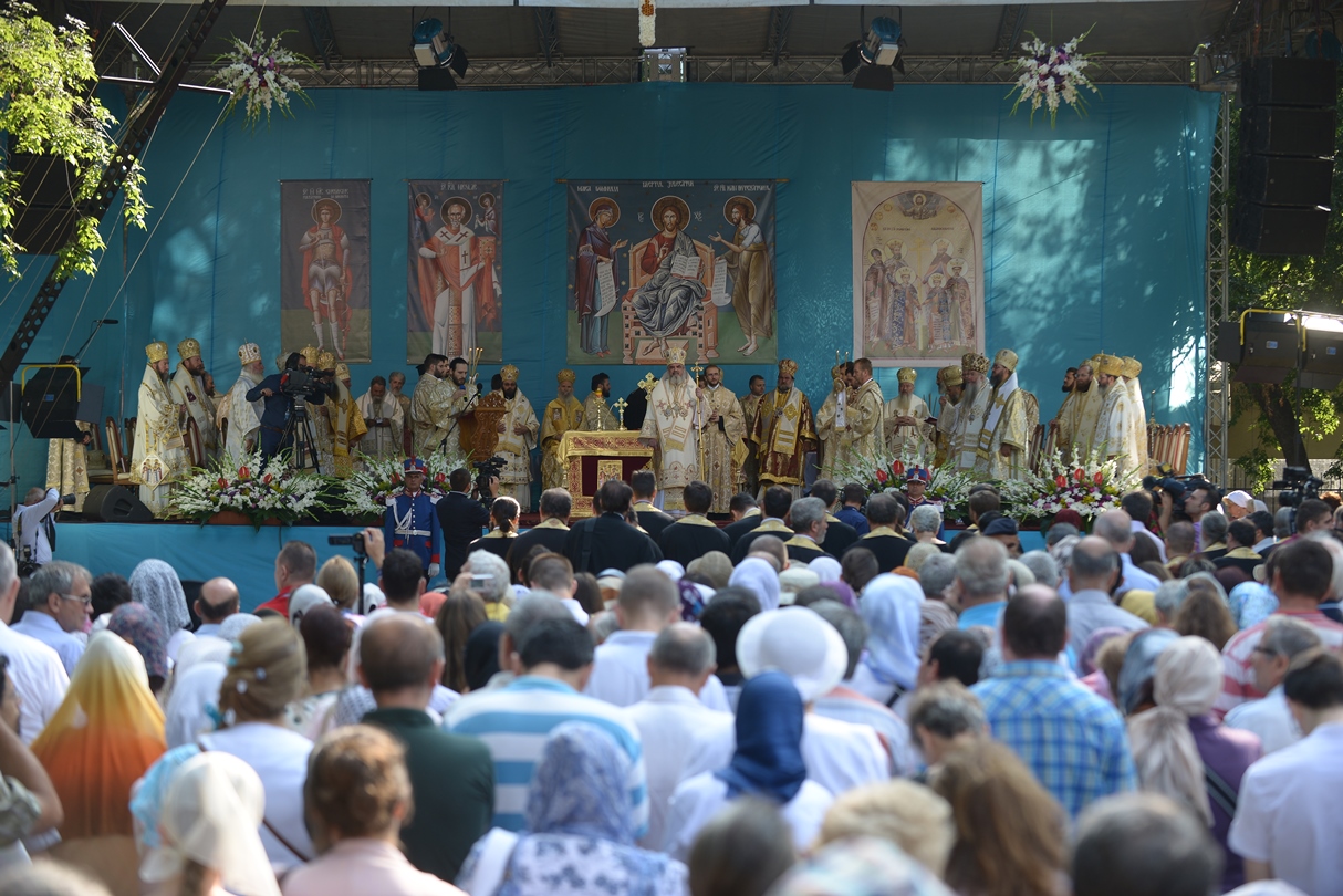 În continuare, de la orele 9.30, Întâistătătorul Bisericii Ortodoxe Române a oficiat Sfânta Liturghiepe un podium special amenajat lângă biserica Sfântul Gheorghe Nou.