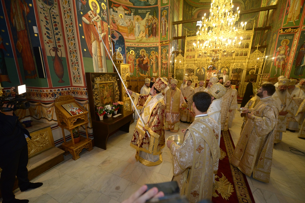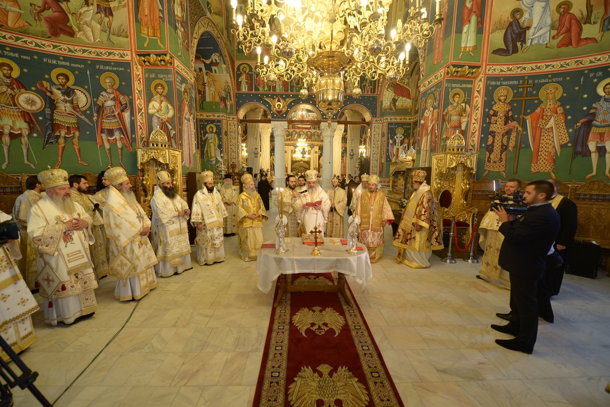 Alături de Preafericitul Părinte Daniel, Patriarhul Bisericii Ortodoxe Române au slujit și următorii ierarhi: Înaltpreasfinţitul Părinte Grigorie, Arhiepiscop de Tiatira și al Marii Britanii (reprezentant al Patriarhiei Constantinopolului), Înaltpreasfinţitul Părinte Serafim, Mitropolit de Zimbabwe și Angola (reprezentant al Patriarhiei Alexandriei și a toată Africa), Înaltpreasfinţitul Părinte Ignatie, Mitropolitul Antiohian al Franței, al Europei Occidentale și Meridionale (reprezentant al Patriarhiei Antiohiei și a întregului Orient), Înaltpreasfinţitul Părinte Nectarie, Arhiepiscop de Anthidona și Epitrop al Patriarhiei Ierusalimului la Constantinopol (reprezentant al Patriarhiei Ierusalimului), Înaltpreasfinţitul Părinte Theodor, Mitropolit de Akhaltsikhe și Tao-Klardjeti (reprezentant al Patriarhia Georgiei), Înaltpreasfinţitul Părinte Teofan, Arhiepiscopul Iaşilor şi Mitropolitul Moldovei şi Bucovinei, Înaltpreasfinţitul Părinte Laurenţiu, Arhiepiscopul Sibiului şi Mitropolitul Ardealului, Înaltpreasfinţitul Părinte Andrei, Arhiepiscopul Vadului, Feleacului şi Clujului și Mitropolitul Clujului, Maramureşului și Sălajului, Înaltpreasfinţitul Părinte Irineu, Arhiepiscopul Craiovei şi Mitropolitul Olteniei, Înaltpreasfinţitul Părinte Serafim, Arhiepiscopul Ortodox Român al Germaniei, Austriei şi Luxemburgului şi Mitropolitul Ortodox Român al Germaniei, Europei Centrale şi de Nord, Înaltpreasfinţitul Părinte Iosif, Arhiepiscopul Ortodox Român al Europei Occidentale şi Mitropolitul Ortodox Român al Europei Occidentale şi Meridionale, Înaltpreasfinţitul Părinte Irineu, Arhiepiscopul Alba Iuliei, Înaltpreasfinţitul Părinte Varsanufie, Arhiepiscopul Râmnicului, Înaltpreasfinţitul Părinte Ciprian, Arhiepiscopul Buzăului şi Vrancei, Înaltpreasfinţitul PărinteCalinic, Arhiepiscopul Argeşului şi Muscelului, Înaltpreasfinţitul Părinte Casian, Arhiepiscopul Dunării de Jos, Înaltpreasfinţitul Părinte Timotei, Arhiepiscopul Aradului, Înaltpreasfinţitul PărinteNicolae, Arhiepiscopul Ortodox Român al celor două Americi, Înaltpreasfinţitul Părinte ArhiepiscopIoan, Episcopul Covasnei şi Harghitei, Preasfinţitul Părinte Corneliu, Episcopul Huşilor, Preasfinţitul Părinte Lucian, Episcopul Caransebeşului, Preasfinţitul Părinte Sofronie, Episcopul Ortodox Român al Oradiei, Preasfinţitul Părinte Nicodim, Episcopul Severinului şi Strehaiei, Preasfinţitul Părinte Galaction, Episcopul Alexandriei și Teleormanului, Preasfinţitul PărinteAmbrozie, Episcopul Giurgiului, Preasfinţitul Părinte Visarion, Episcopul Tulcii, Preasfinţitul Părinte Petroniu, Episcopul Sălajului, Preasfinţitul Părinte Gurie, Episcopul Devei şi Hunedoarei, Preasfinţitul Părinte Siluan, Episcopul Ortodox Român din Ungaria, Preasfinţitul Părinte Timotei, Episcopul Ortodox Român al Spaniei şi Portugaliei, Preasfinţitul Părinte Macarie, Episcopul Ortodox Român al Europei de Nord, Preasfinţitul Părinte Varlaam Ploieşteanul, Episcop-vicar patriarhal, Preasfinţitul Părinte Ieronim Sinaitul, Episcop-vicar patriarhal, Preasfinţitul PărinteAndrei Făgărăşeanul, Episcop-vicar al Arhiepiscopiei Sibiului, Preasfinţitul Părinte Paisie Lugojeanul, Episcop-vicar al Arhiepiscopiei Timişoarei, Preasfinţitul Părinte Sofian Braşoveanul, Episcop-vicar al Arhiepiscopiei Ortodoxe Române a Germaniei, Austriei şi Luxemburgului, Preasfinţitul Părinte Emilian Lovişteanul, Episcop-vicar al Arhiepiscopiei Râmnicului, Preasfinţitul Părinte Ioachim Băcăuanul, Episcop-vicar al Arhiepiscopiei Romanului şi Bacăului, Preasfinţitul Părinte Iustin Sigheteanul, Arhiereu-vicar al Episcopiei Ortodoxe Române a Maramureşului şi Sătmarului, Preasfințitul Părinte Ignatie Mureșeanul, Arhiereu-vicar al Episcopiei Ortodoxe Române a Spaniei și Portugaliei.