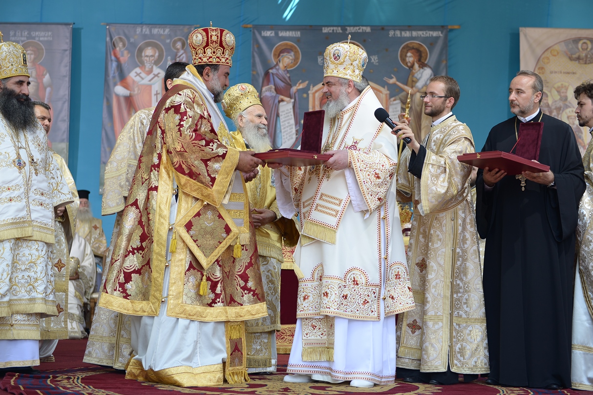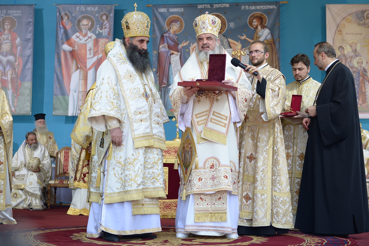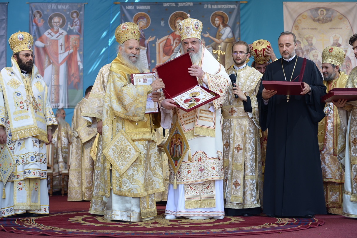 Apoi, Patriarhul României a oferit ierarhilor delegaţi ai Patriarhiei Ecumenice a Constantinopolului, Patriarhiei Alexandriei, Patriarhiei Antiohiei, Patriarhiei Ierusalimului şi Patriarhiei Georgiei, Ordinul „Sfinţii Martiri Brâncoveni” pentru ierarhi, constând într-un engolpion reprezentând pe sfinții Brâncoveni.