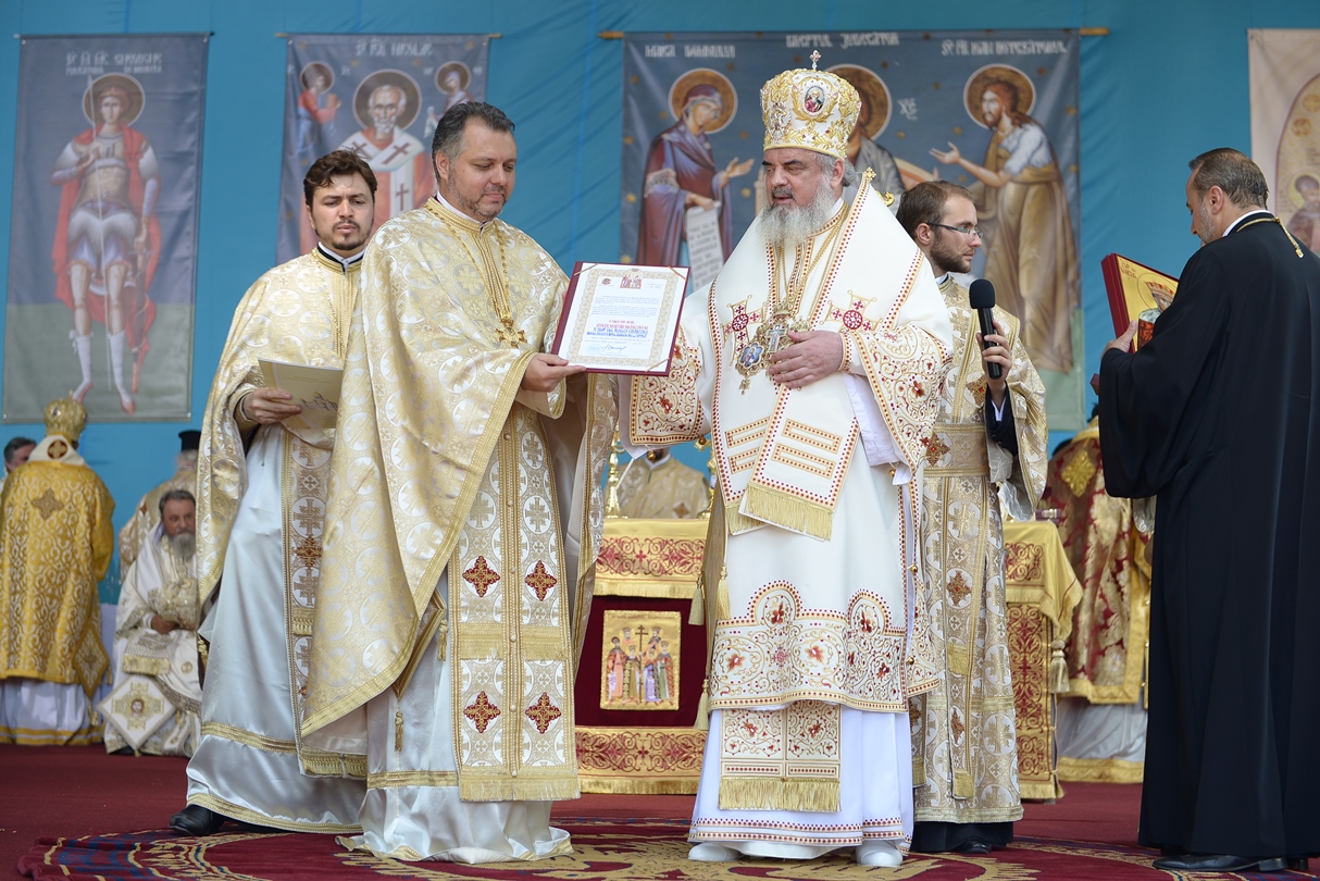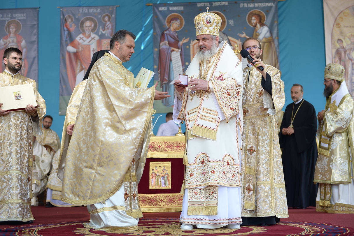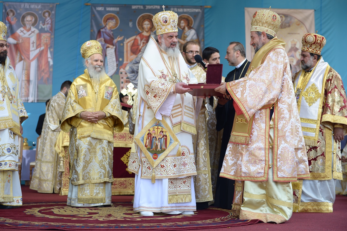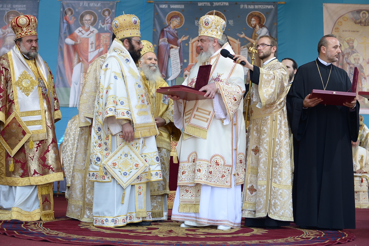 Apoi, Patriarhul României a oferit ierarhilor delegaţi ai Patriarhiei Ecumenice a Constantinopolului, Patriarhiei Alexandriei, Patriarhiei Antiohiei, Patriarhiei Ierusalimului şi Patriarhiei Georgiei, Ordinul „Sfinţii Martiri Brâncoveni” pentru ierarhi, constând într-un engolpion reprezentând pe sfinții Brâncoveni.