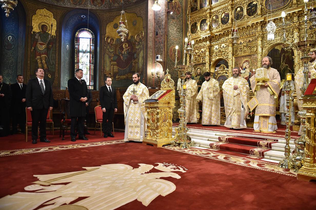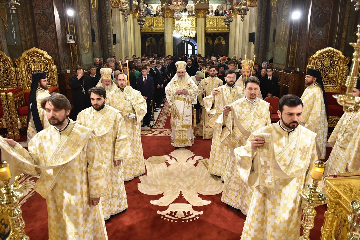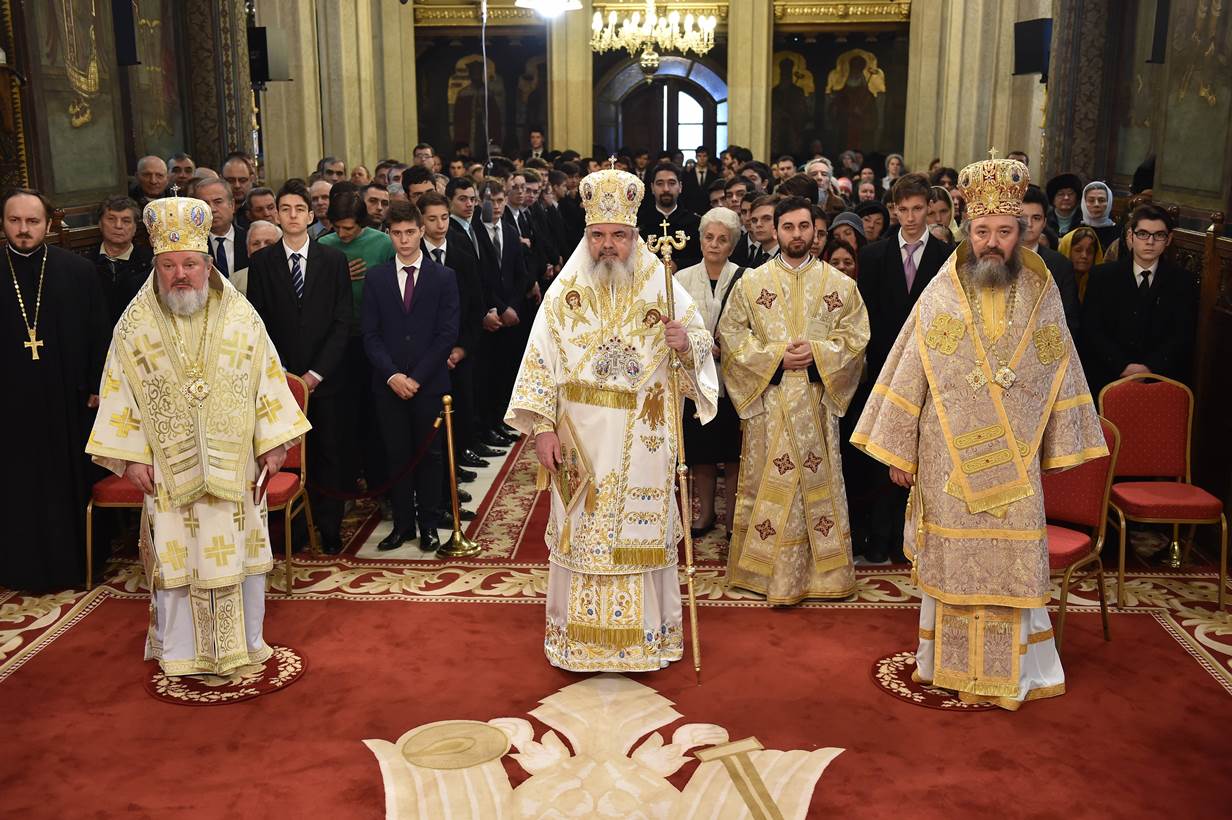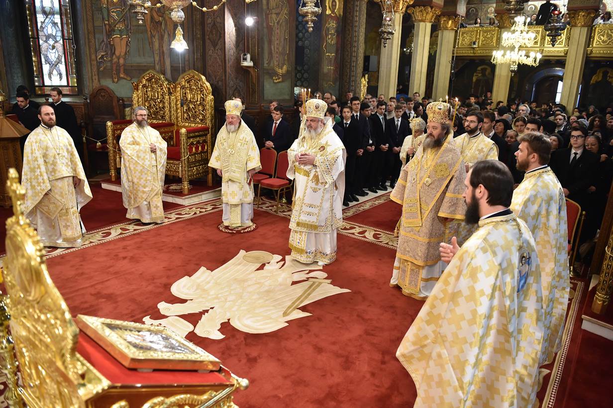 În această mare zi de sărbătoare, la Catedrala Patriarhală din Bucureşti, slujba Sfintei Liturghii a fost oficiată de către Preafericitul Părinte Daniel, Patriarhul Bisericii Ortodoxe Române. Alături de Patriarhul României au slujit: Preasfinţitul Părinte Varlaam Ploieşteanul, Episcop Vicar Patriarhal şi Preasfinţitul Părinte Ieronim Sinaitul, Episcop Vicar Patriarhal, înconjuraţi de un sobor de preoţi şi diaconi.