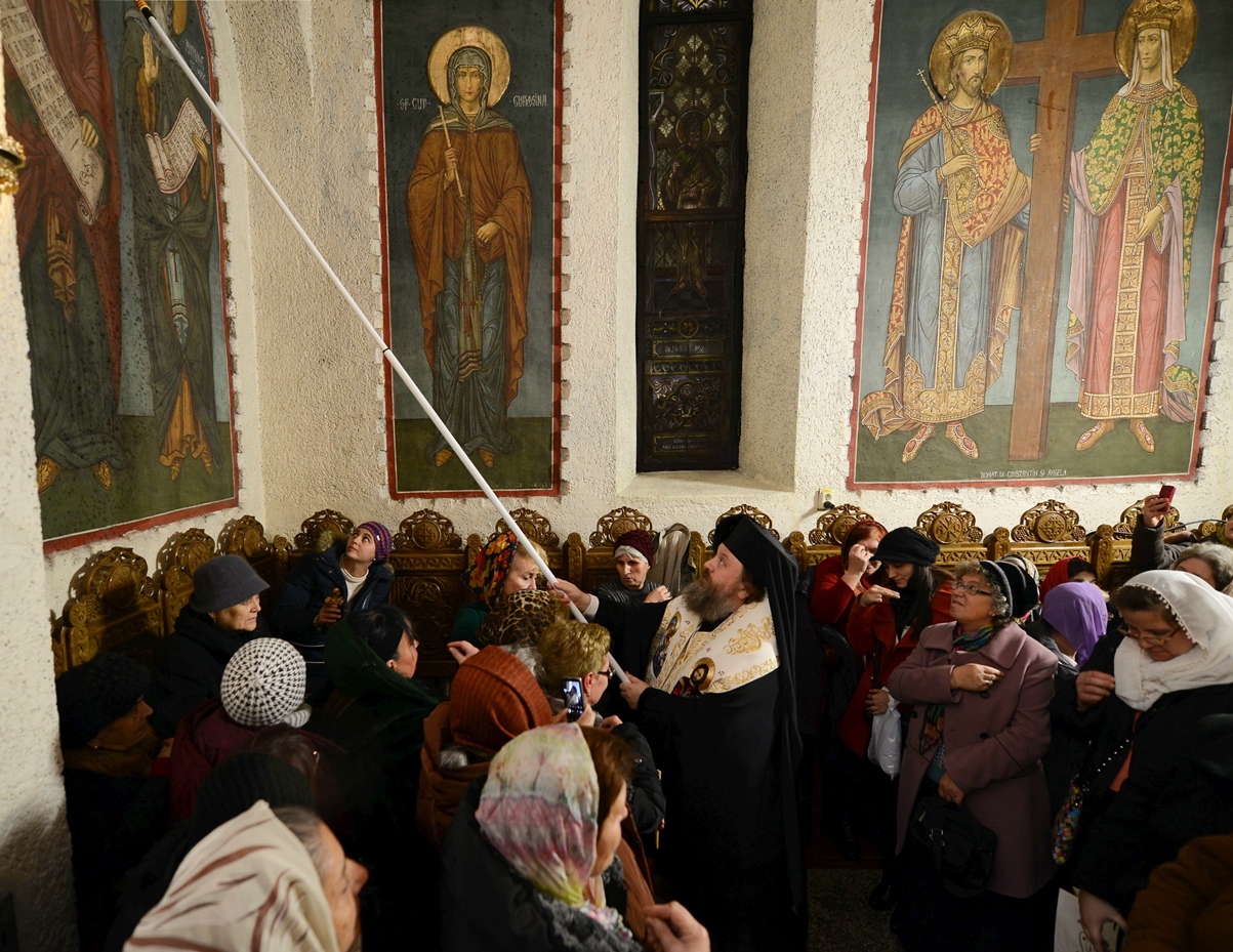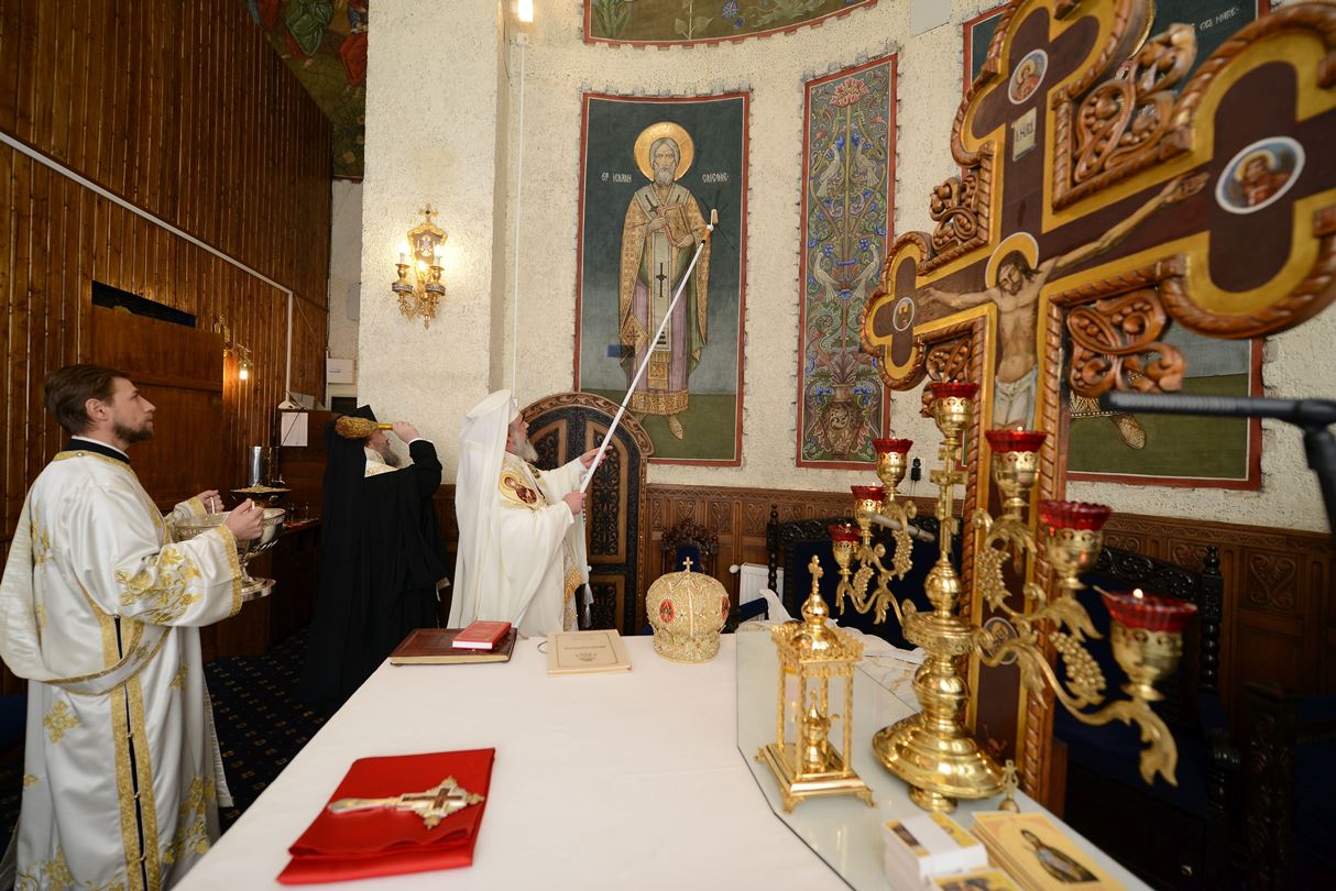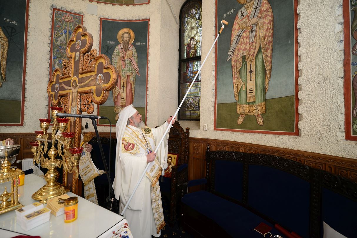 În continuarea Sfintei Liturghii, Patriarhul României a oficiat slujba de sfinţire a picturii şi catapetesmei Bisericii „Sfântul Ioan“ – Piaţă. Alături de Preafericirea Sa s-a aflat Preasfinţitul Părinte Episcop-vicar Timotei Prahoveanul, precum şi un sobor de preoţi şi diaconi.