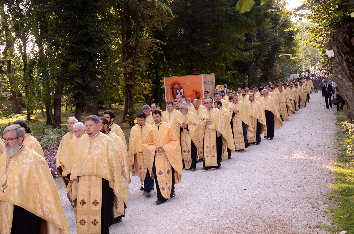 Manifestările au început în zorii zilei, atunci când moaştele Sfântului Constantin Brâncoveanu au fost aduse de la Biserica “Sfântul Gheorghe” - Nou. Racla a fost purtată în procesiune, într-o trăsură trasă de cai, până la bisericuţa din apropierea zidurilor ansamblului, ctitorie brâncovenească din secolul al XVII-lea. În mijlocul credincioşilor, preoţilor din protopopiatele Ilfov Nord şi Ilfov Sud şi a preoţilor coslujitori de la Sectoarele 1 şi 6 care au întâmpinat cinstitele odoare s-a aflat Înaltpreasfinţitul Părinte Varsanufie, Arhiepiscopul Râmnicului. După ce au înconjurat locaşul de cult, racla a fost aşezată spre închinare în curtea aşezământului. În continuare, pe scena amenajată aici, Înaltpreasfinţitul Părinte Arhiepiscop Varsanufie a oficiat Sfânta Liturghie. Din sobor au făcut parte mai mulţi ierarhi ai Bisericii noastre.