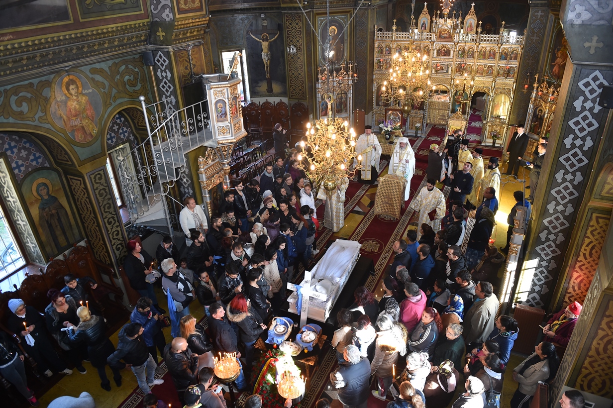 În continuare, a fost oficiată slujba de înmormântare de către un sobor de preoţi şi diaconi.