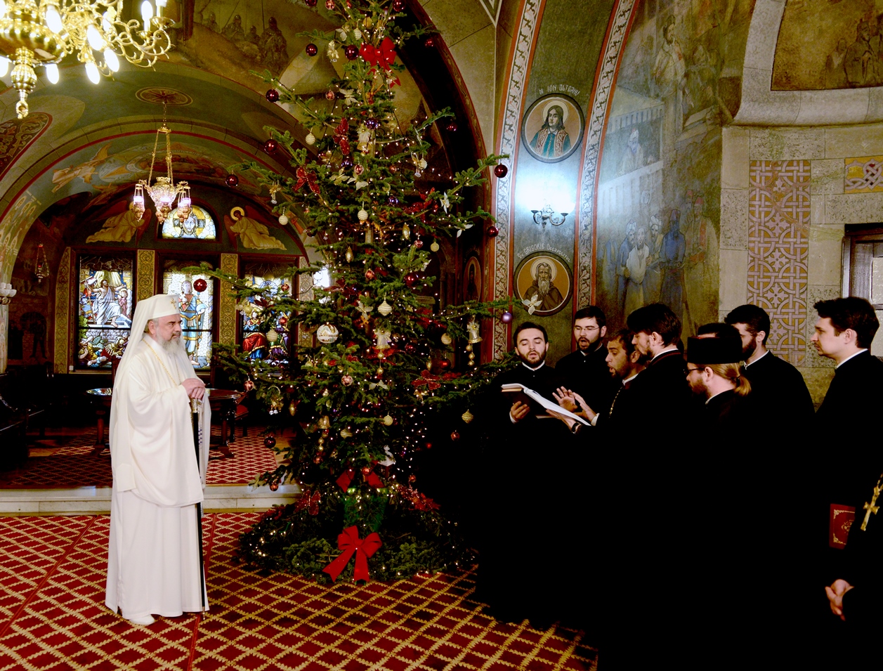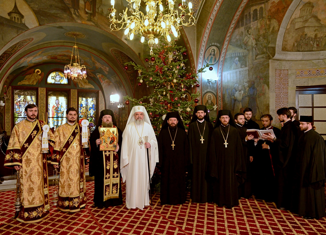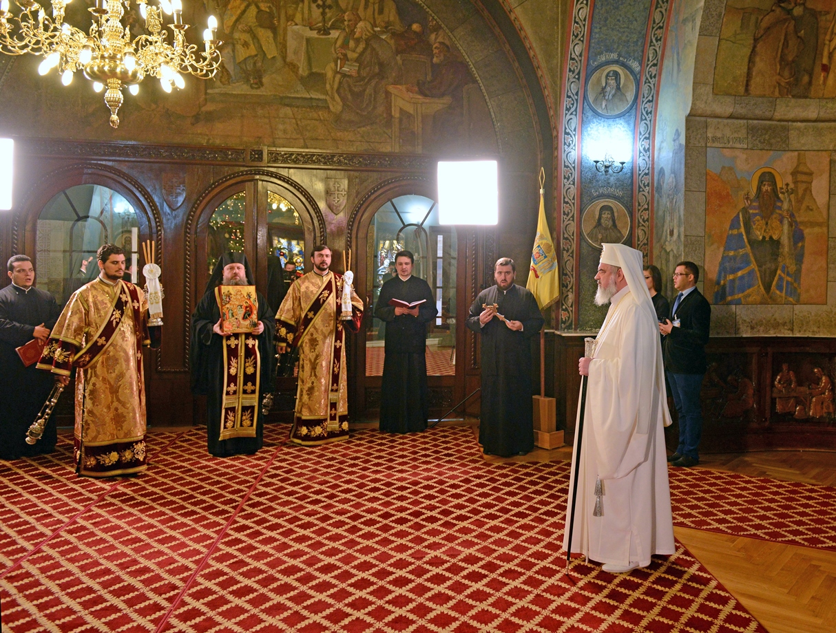 Slujitorii Catedralei Patriarhale cu icoana Naşterii Domnului la Reşedinţa Patriarhală (24 decembrie 2013)