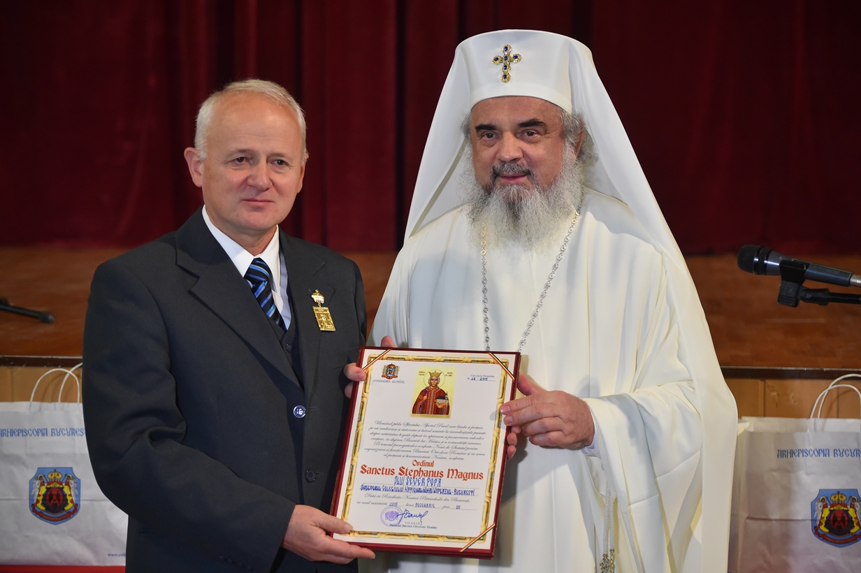După rostirea mesajului, Patriarhul României a acordat Distincția Sanctus Stephanus Magnus domnului Sever Popa, directorul Colegiului Național Mihai Viteazul.