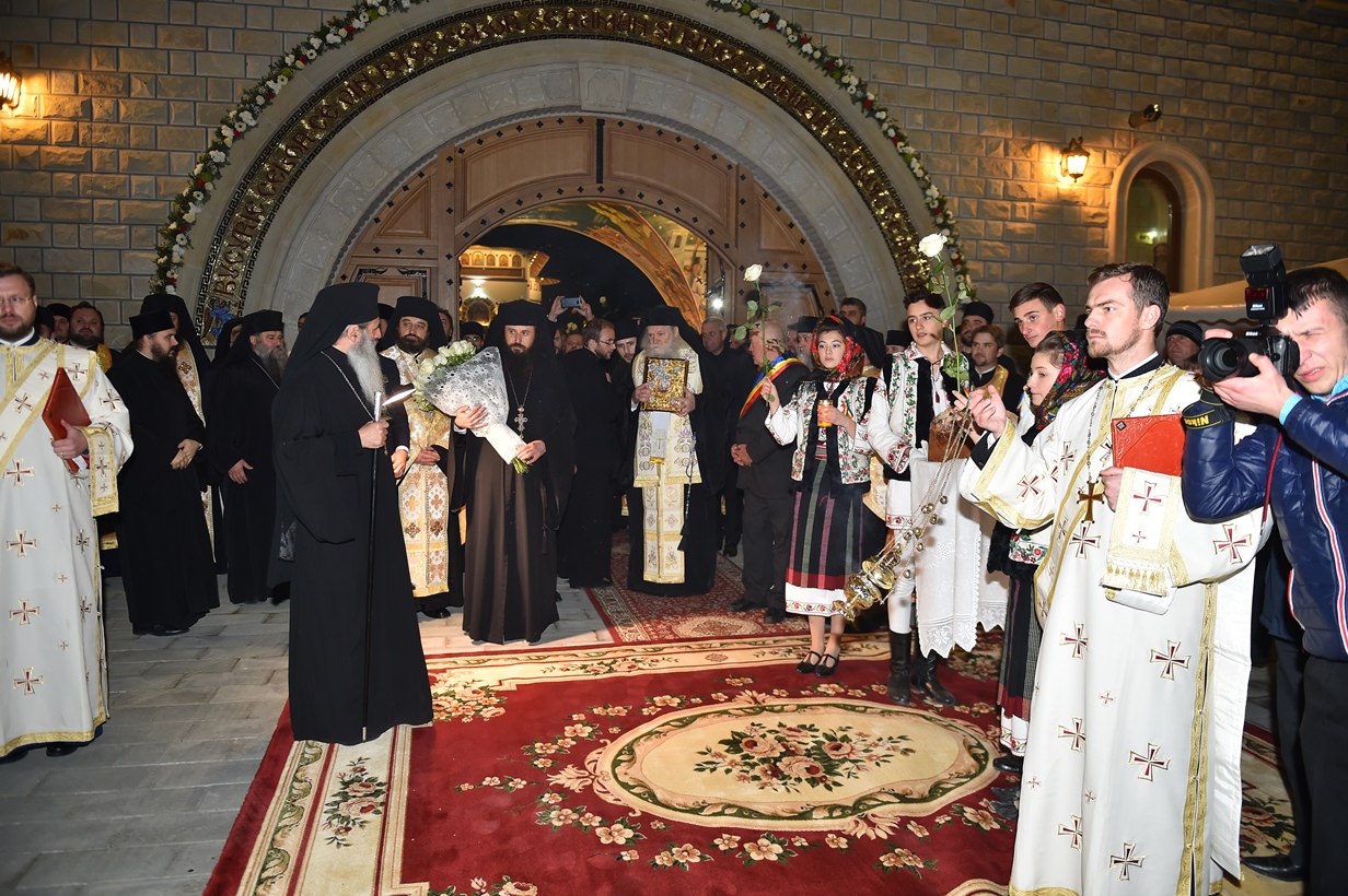From 6-8 November 2015, His Beatitude Daniel, Patriarch of Romania is paying a pastoral visit to the Metropolitanate of Moldova and Bucovina. Saturday night, 7 November 2015, the Patriarch of the Romanian Orthodox Church arrived at Zosin Monastery. There, His Beatitude was met by many young people dressed in national costumes, as well as by the community of the monastery.