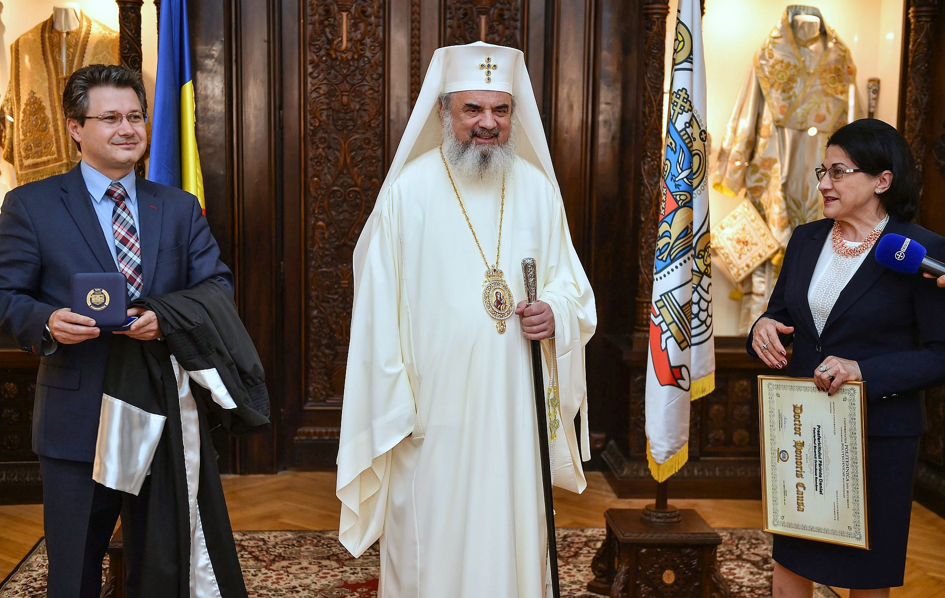Preafericitul Părinte Daniel, Patriarhul Bisericii Ortodoxe Române, a primit, astăzi, 14 aprilie 2016, titlul de Doctor Honoris Causa al Universității Politehnica din București.