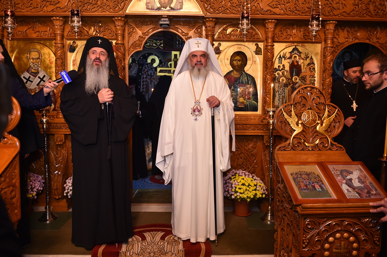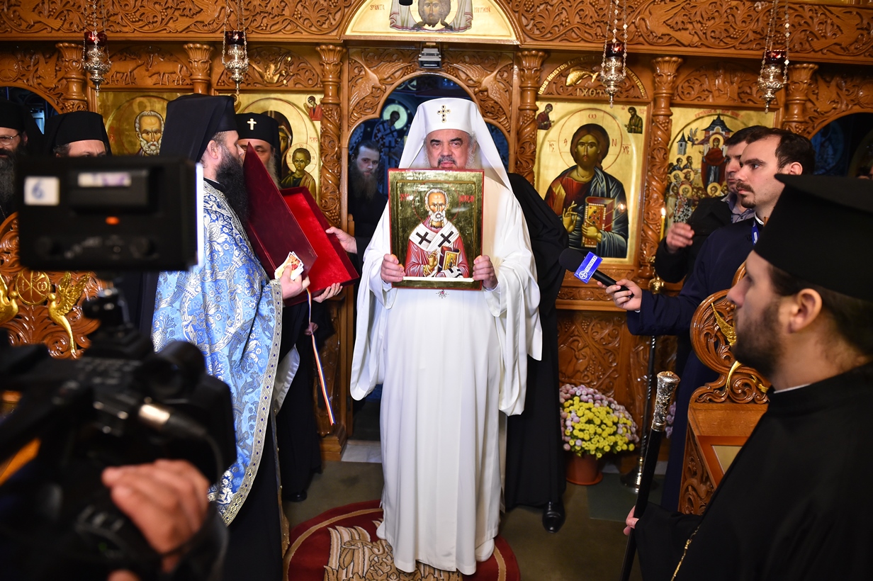 Părintele arhimandrit Ioan Harpa a dăruit Preafericitului Părinte Patriarh Daniel, din partea obştii monahale, o icoană reprezentând pe Sfântul Ierarh Nicolae, ocrotitorul Mănăstirii.