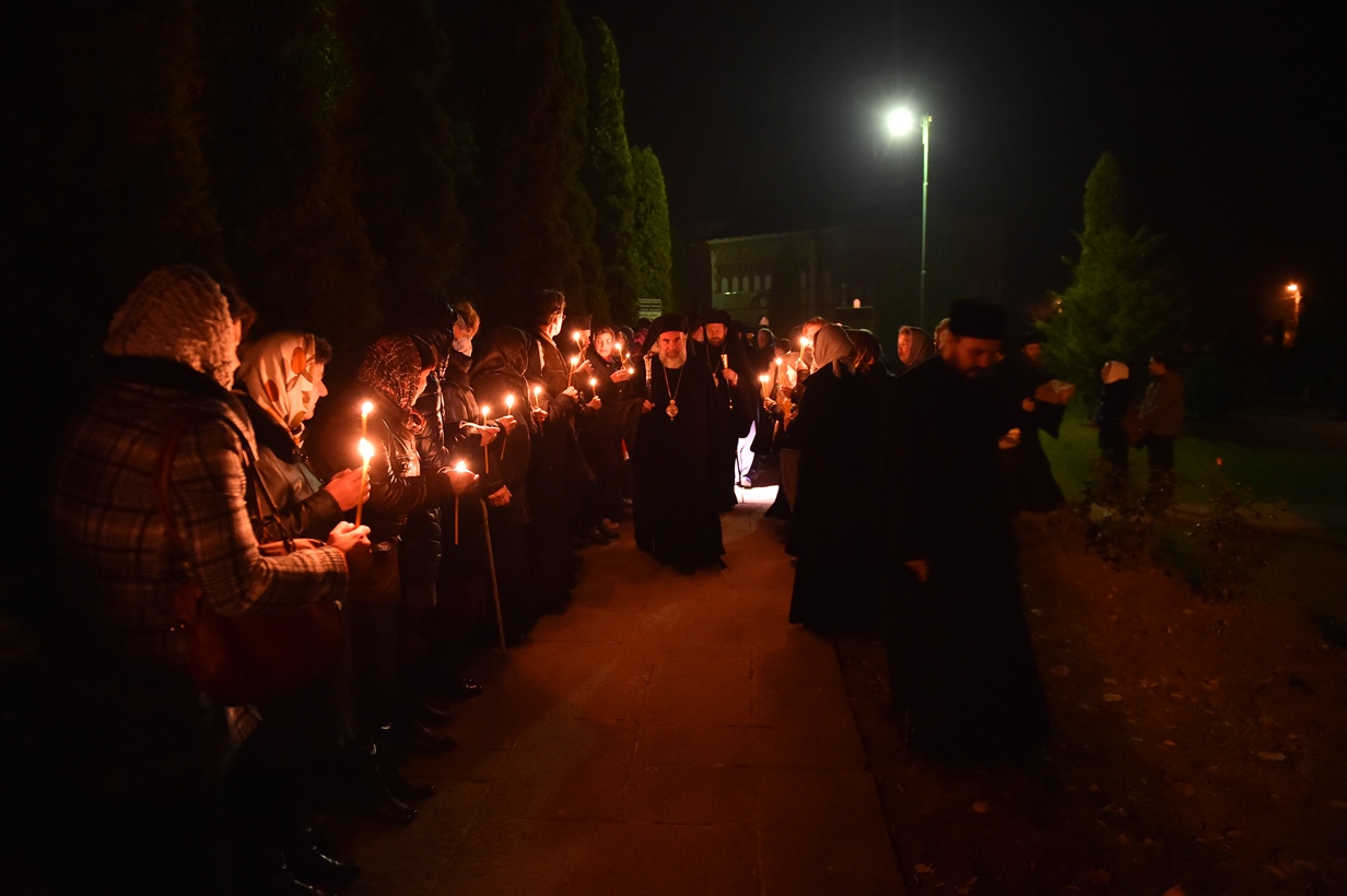 Întâistătătorul Bisericii Ortodoxe Române a fost întâmpinat de o mulţime de credincioşi, preoţi, precum şi de numeroase oficialităţi, reprezentanţi ai autorităţilor locale. Cu acest prilej, cuvântul de bun venit a fost rostit, în biserica nouă a aşezământului monahal, de către Înaltpreasfinţitul Părinte Teofan, Mitropolitul Moldovei şi Bucovinei.