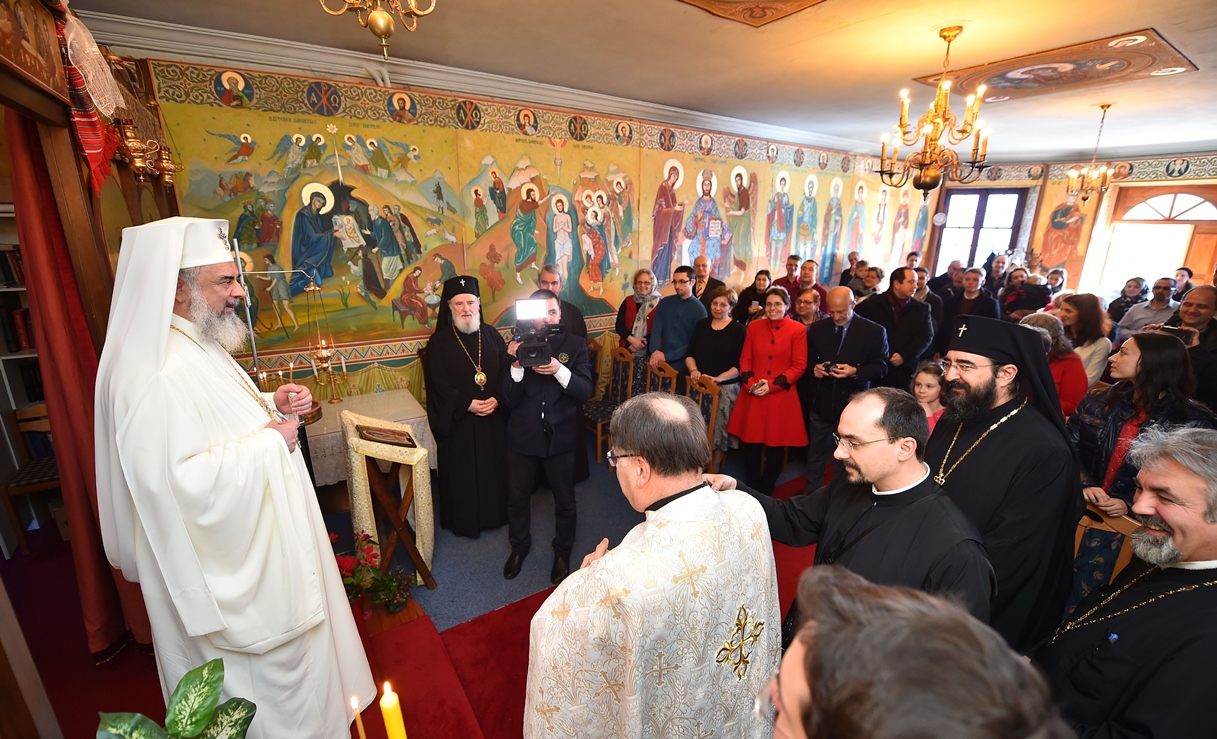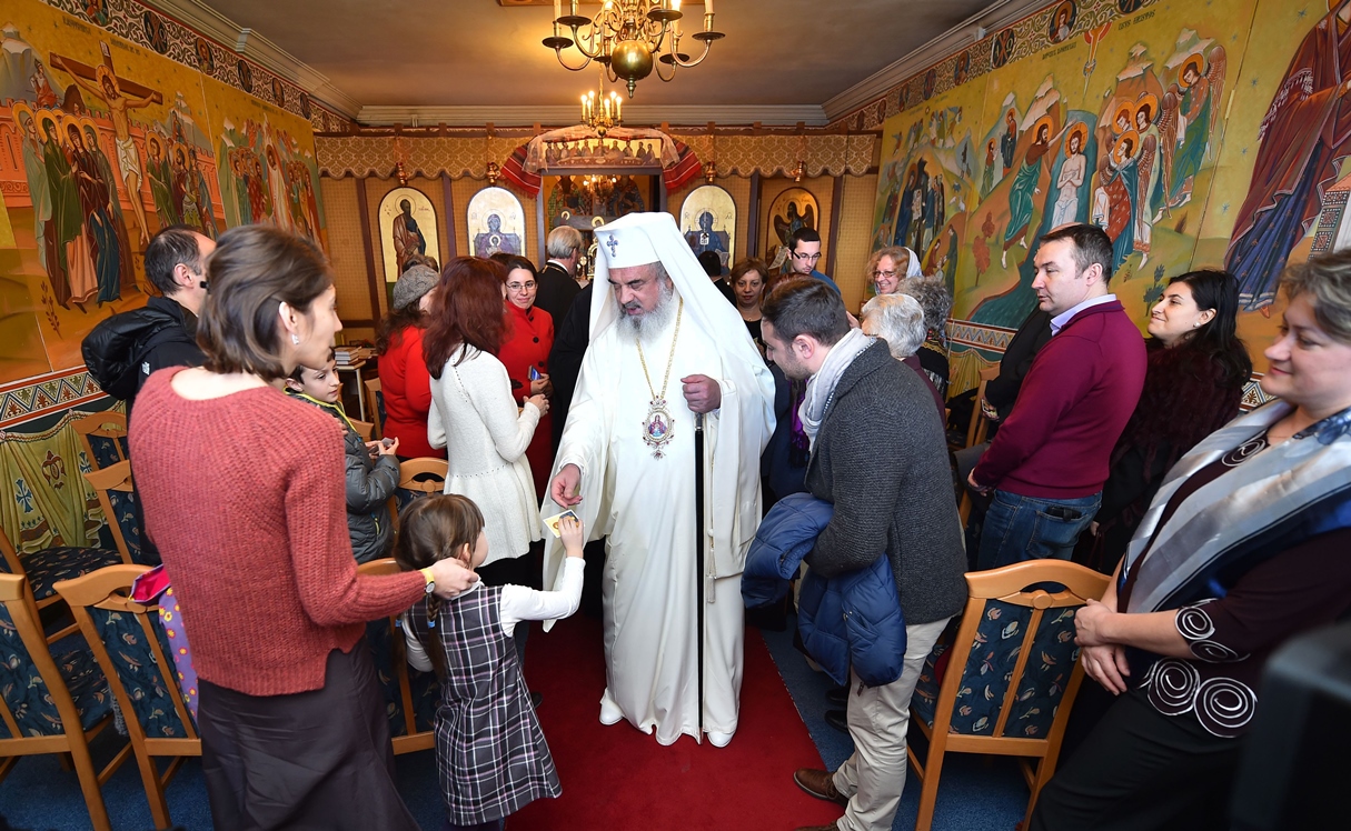 Preafericitul Părinte Daniel, Patriarhul României, a vizitat duminică, 24 ianuarie 2016, după Sfânta Liturghie, Paraclisul comunităţii româneşti din Geneva.