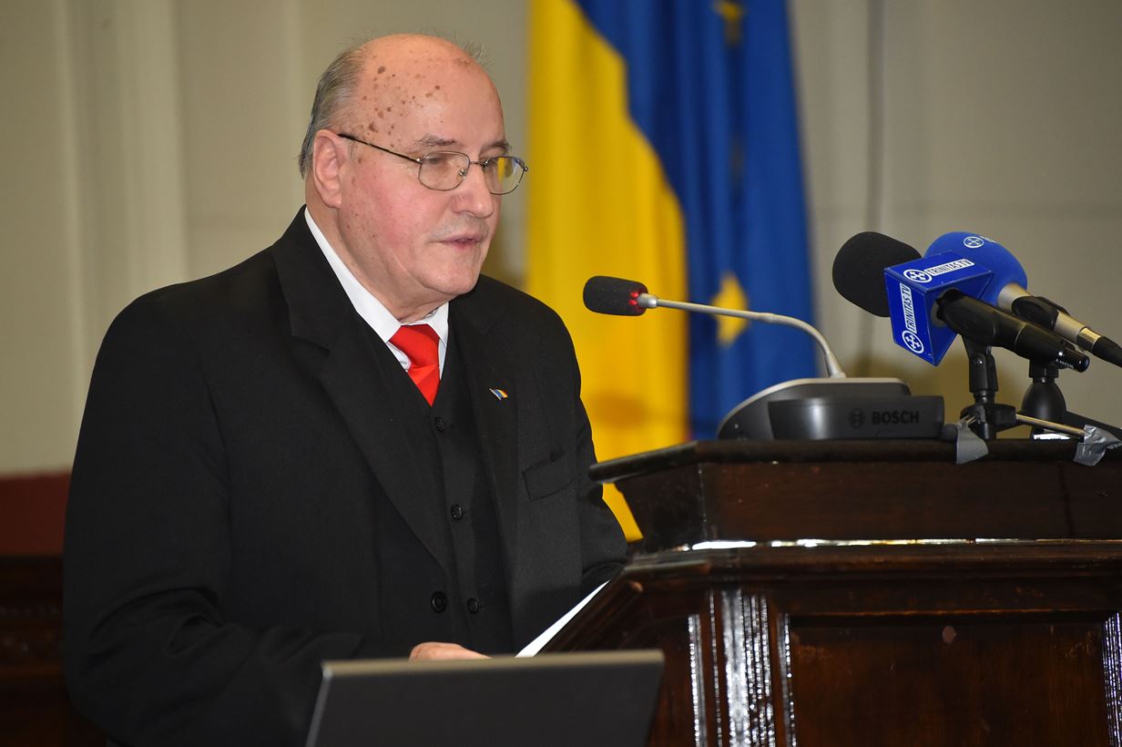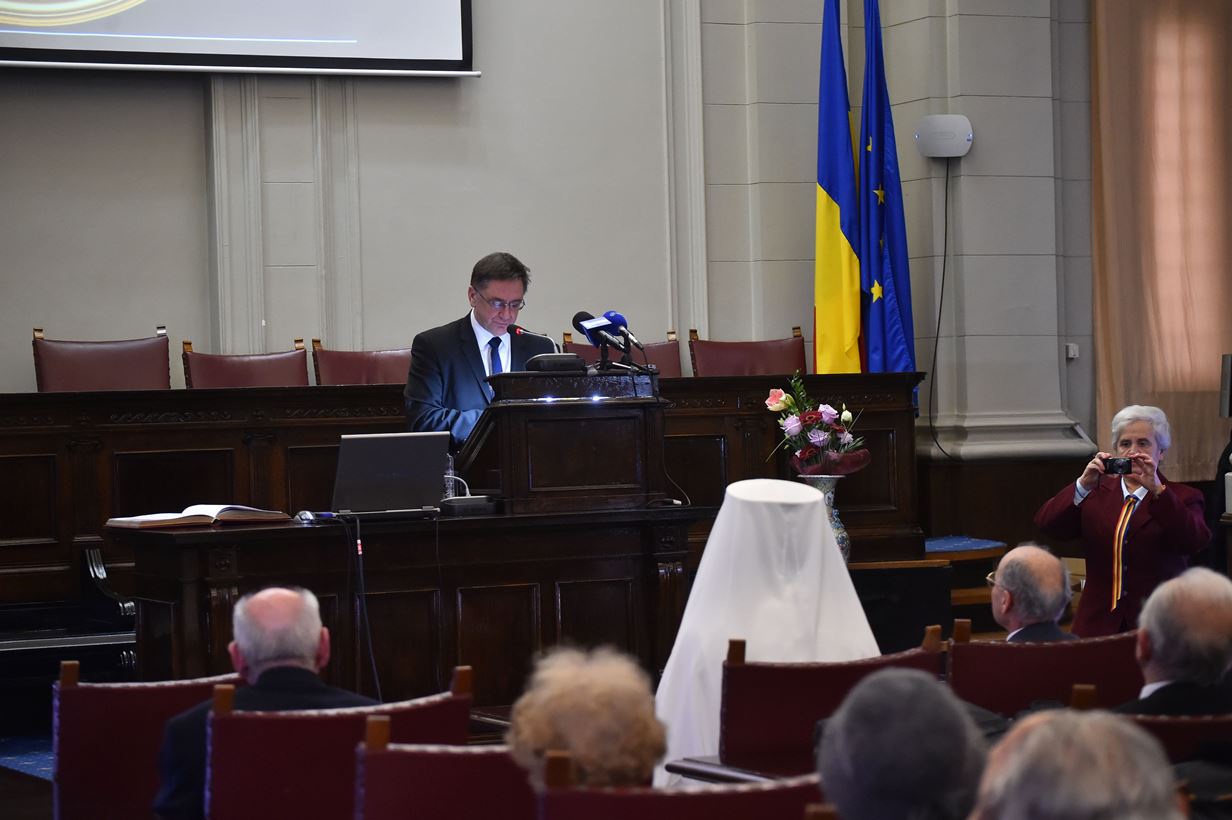 După intonarea Imnului Național, Președintele Academiei, Ionel-Valentin Vlad, a evocat momentul istoric ce a marcat Marea Unire din 1918.